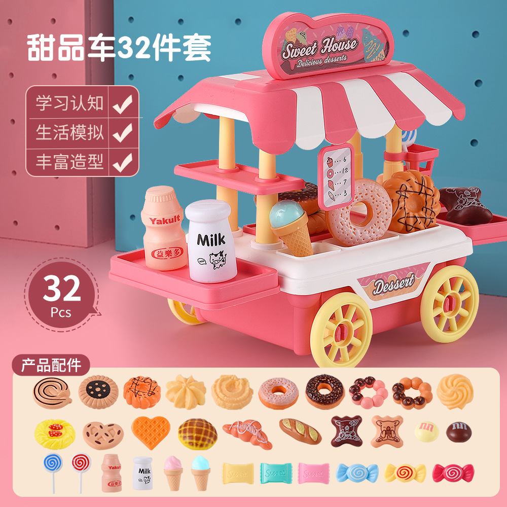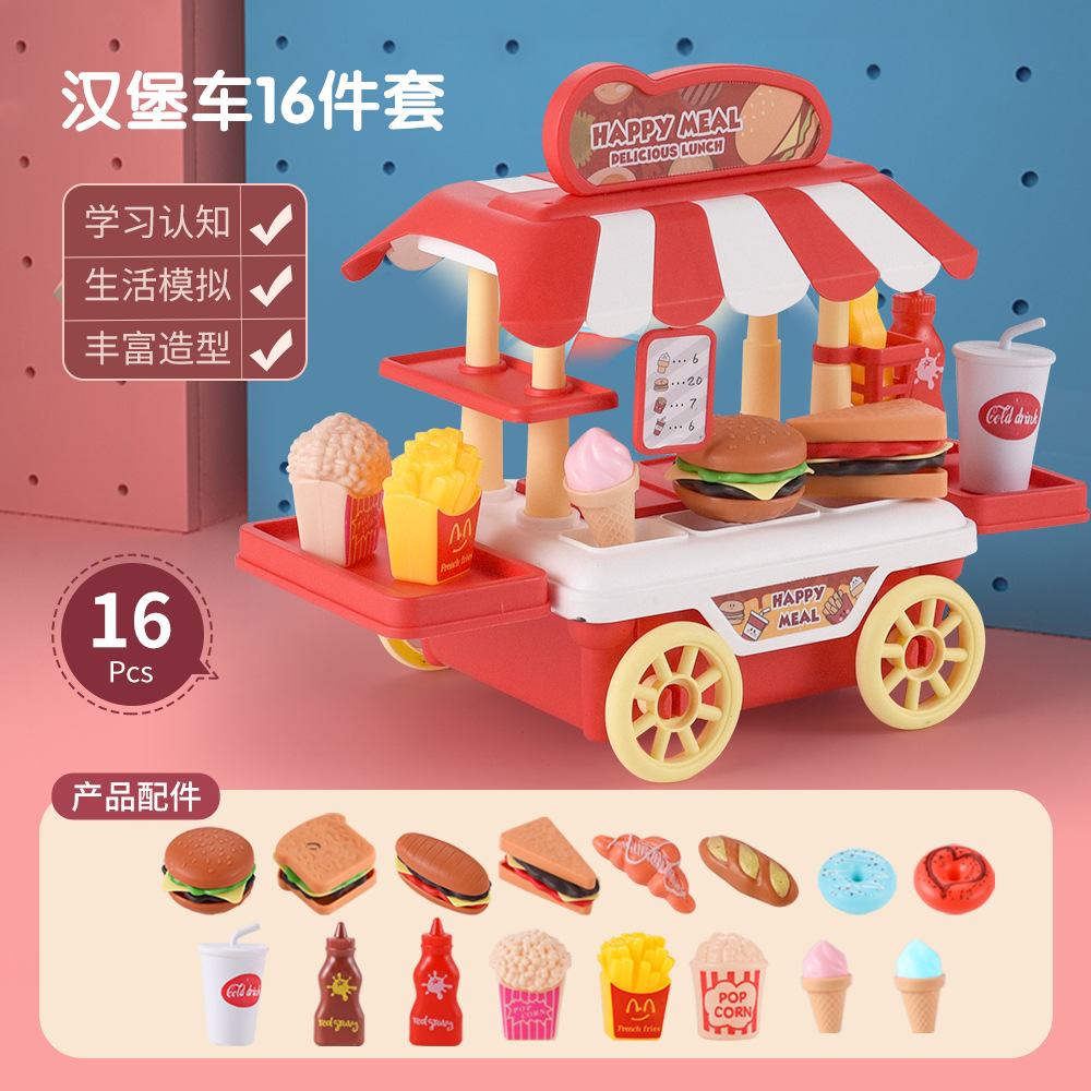 新款仿真快餐车汉堡甜品蛋糕车烧烤多功能小吃车夜市流动摆摊批发