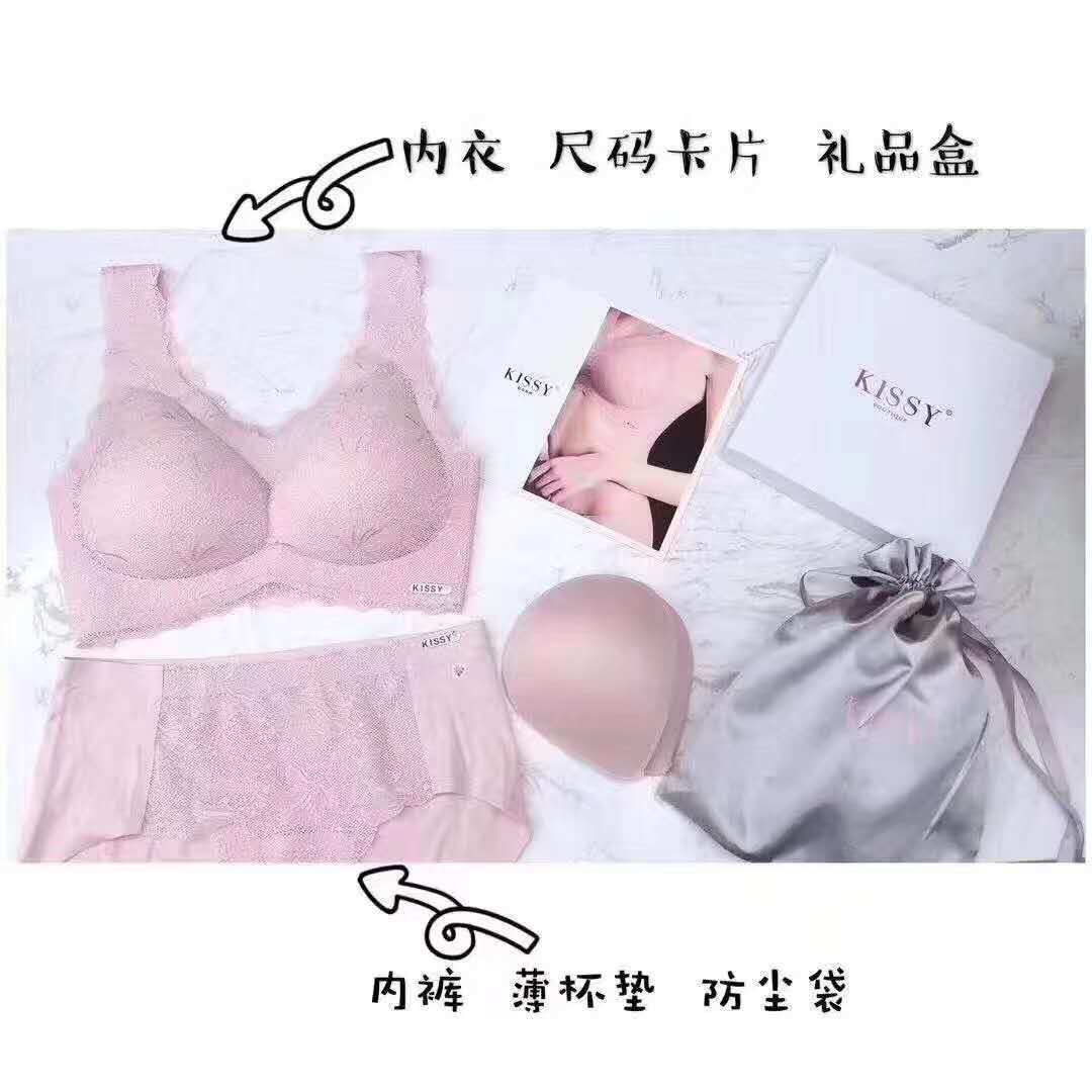 微商同款kissy如内衣铂金款吻薄款蕾丝性感聚拢无痕瑜伽文胸套装