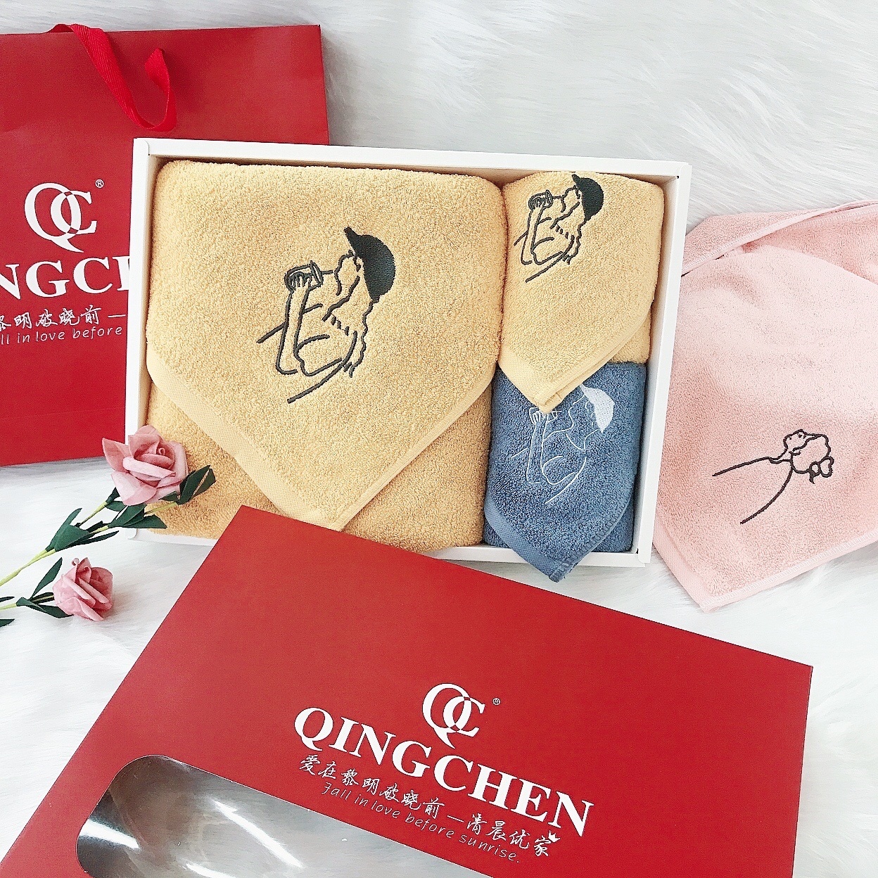 亿清晨礼品毛巾浴巾吸水家用纯棉毛巾浴巾礼盒婚庆伴手礼品批发
