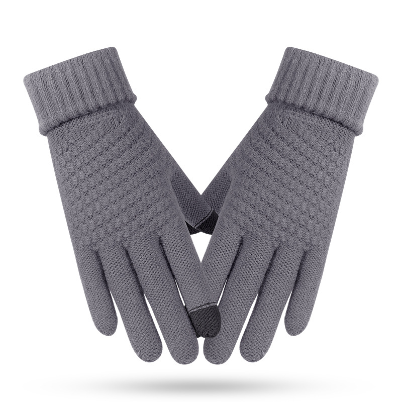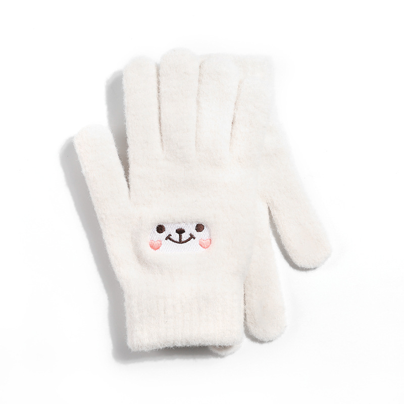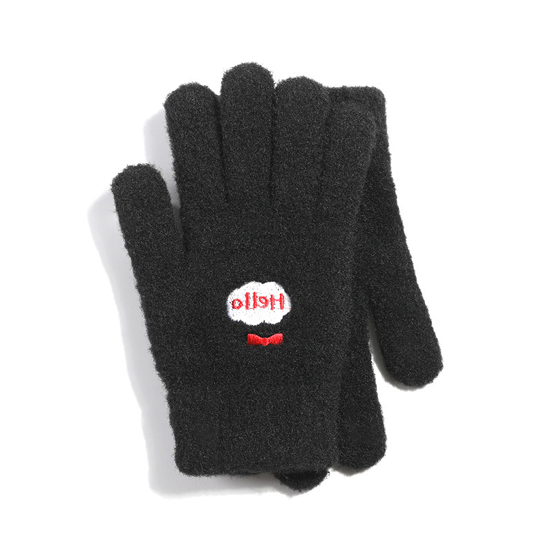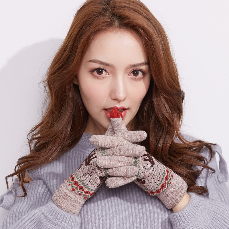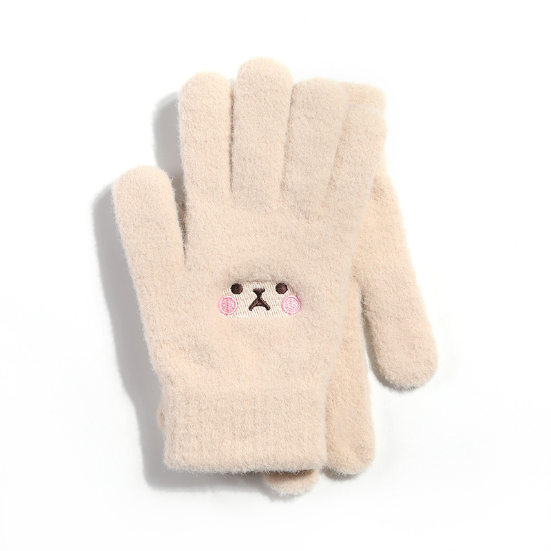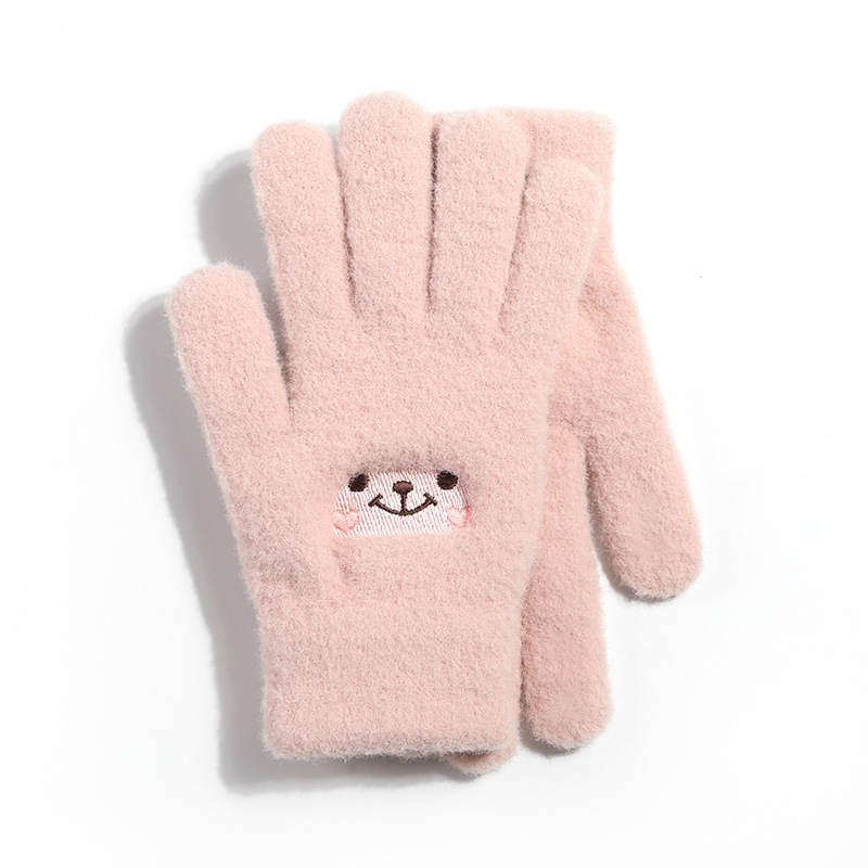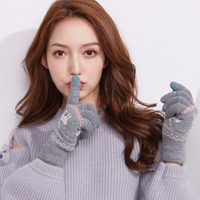秋冬季手套女士骑车行保暖分指纯色触屏加绒厚针织可爱学生棉手套