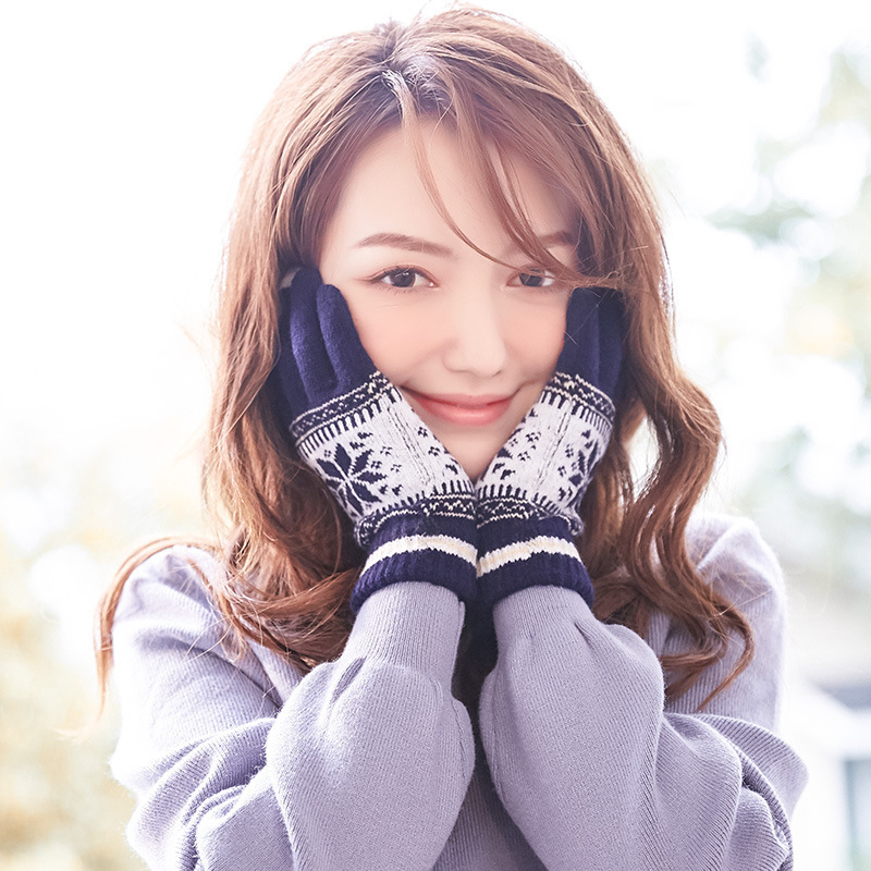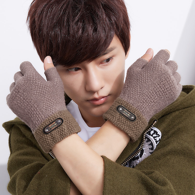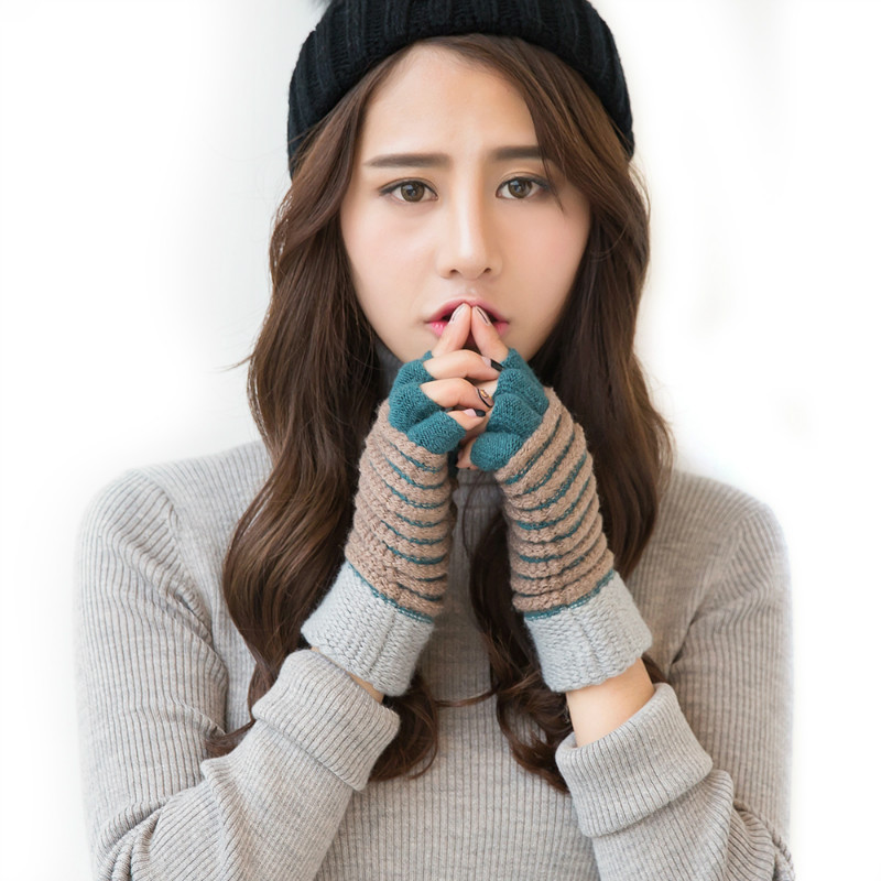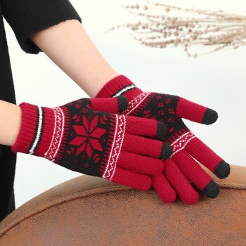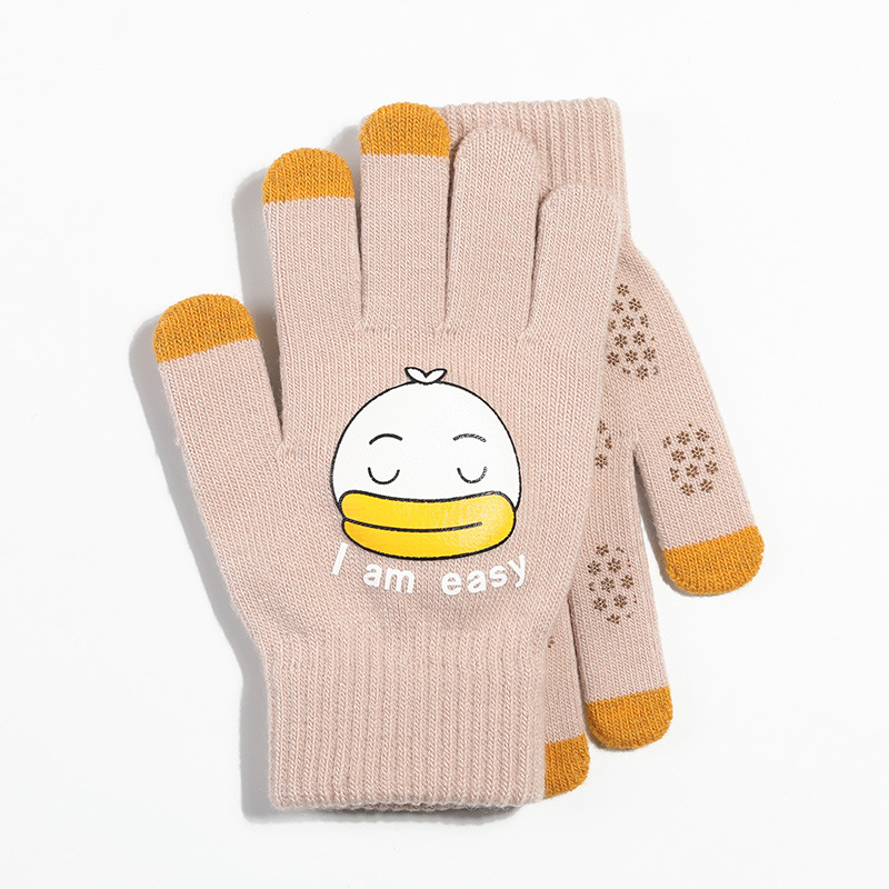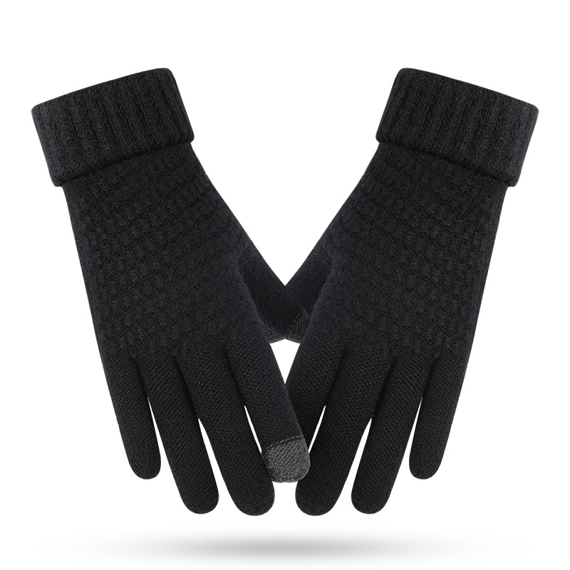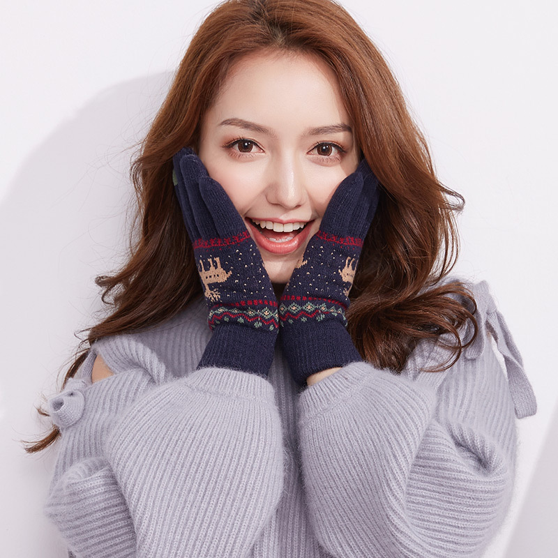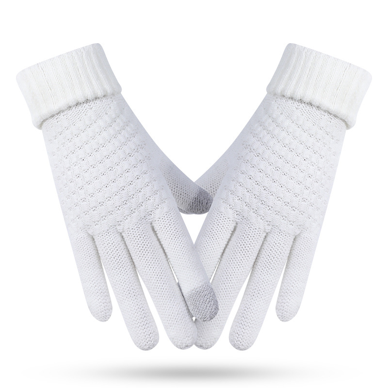 秋冬季手套女士骑车行保暖分指纯色触屏加绒厚针织可爱学生棉手套