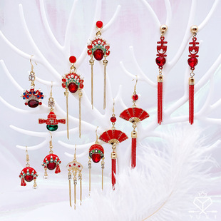 秋冬新款中国风脸谱耳环新娘结婚故宫戏曲花旦耳坠气质复古耳饰