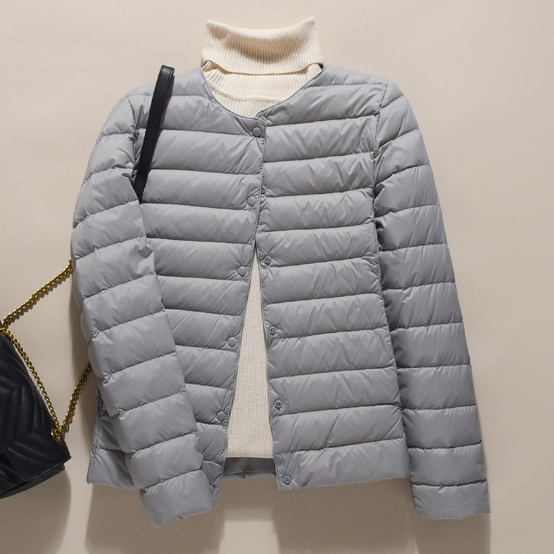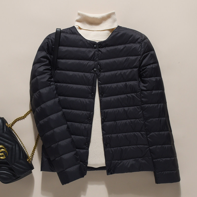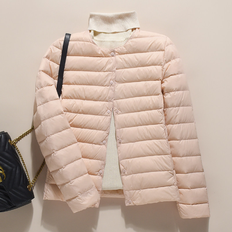 轻薄羽绒服女短款圆领v领保暖内胆秋冬无领修身大码外套