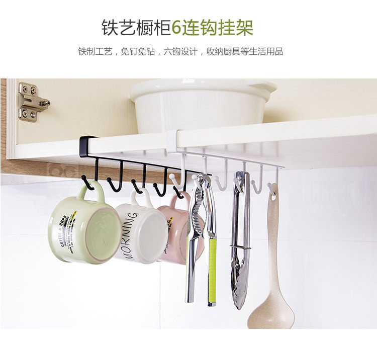 六连钩厨房铁艺无痕免钉挂钩 橱柜收纳挂架多功能衣柜排钩整理钩