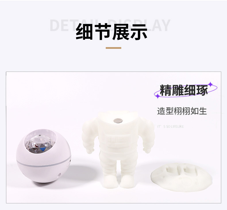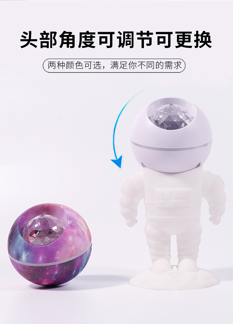 • 创新设计和独特的外观:宇航员的外观设计新颖独特,回应星空和银河系主题,带您探索广阔的星空。 宇航员头部可以360°旋转,带磁性吸引力,可以在任何地方投射星云而不受限制。