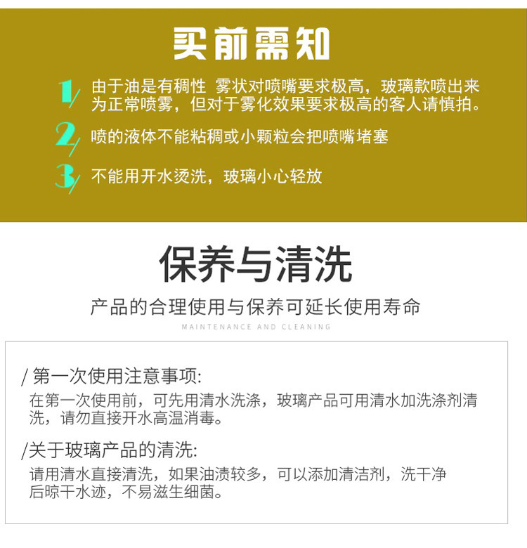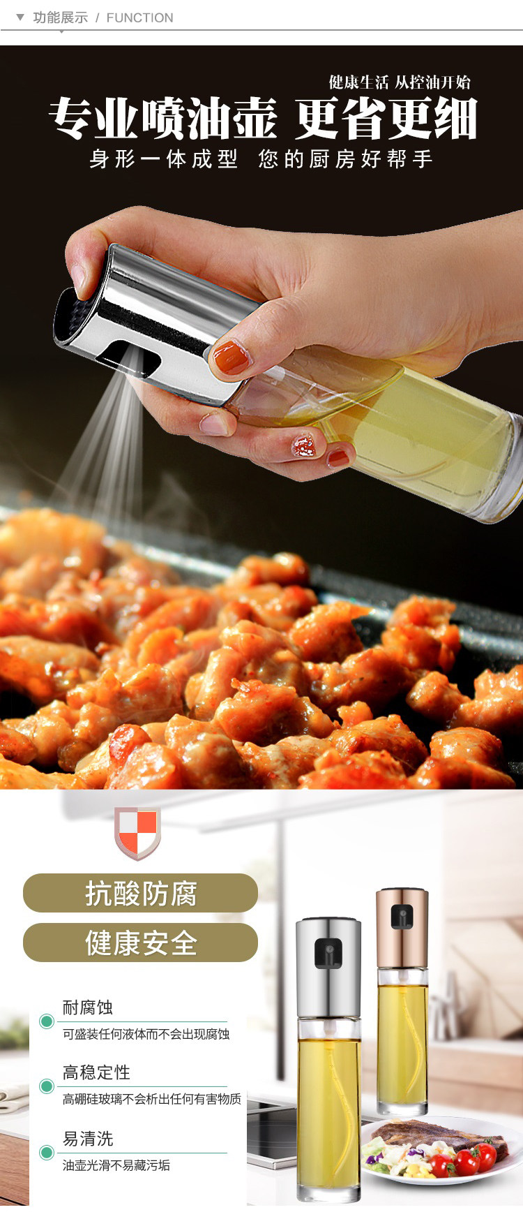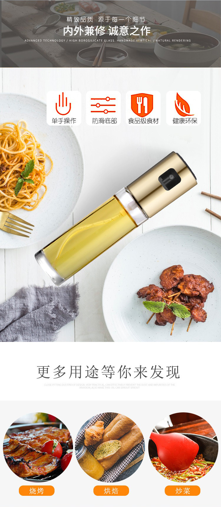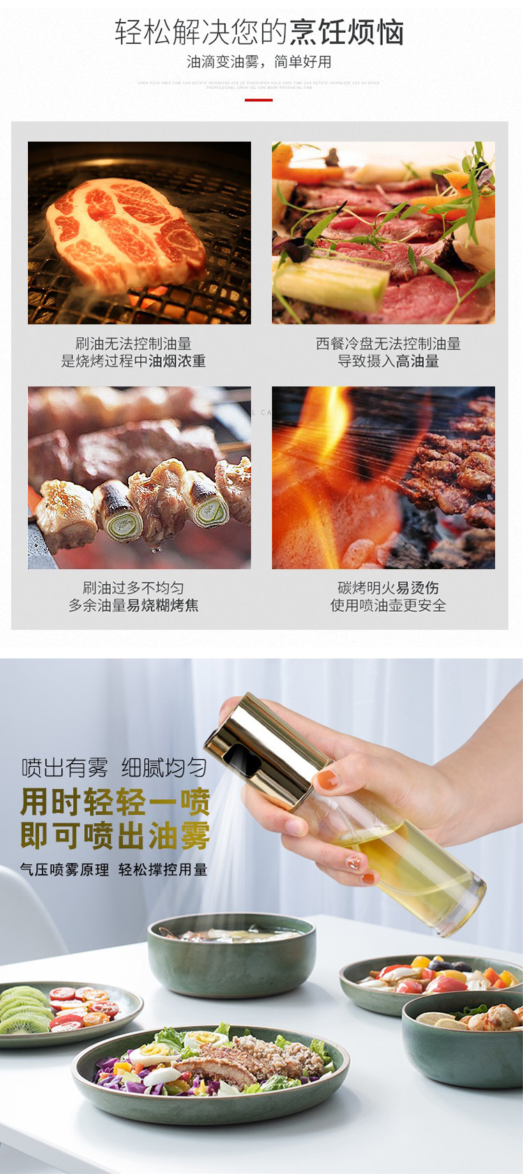 厨房喷雾油瓶按压式喷油壶透明高硼硅玻璃装醋瓶香油瓶调料瓶喷壶