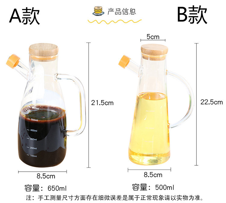 北欧风格高硼硅玻璃油壶厨房带刻度调味瓶酱油瓶醋瓶防漏控油瓶