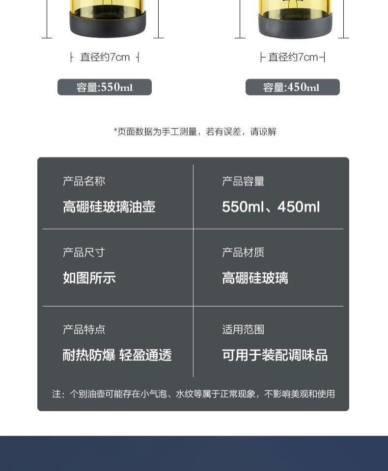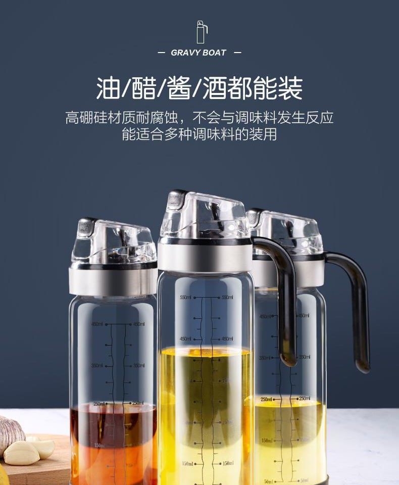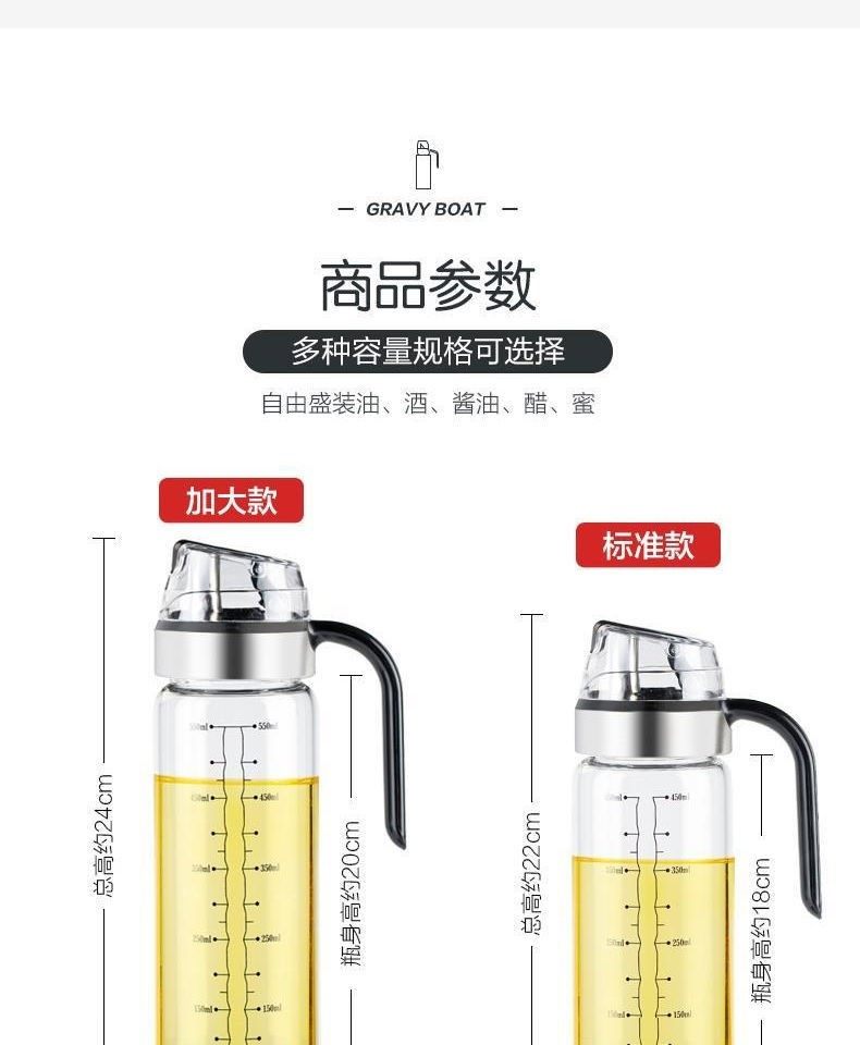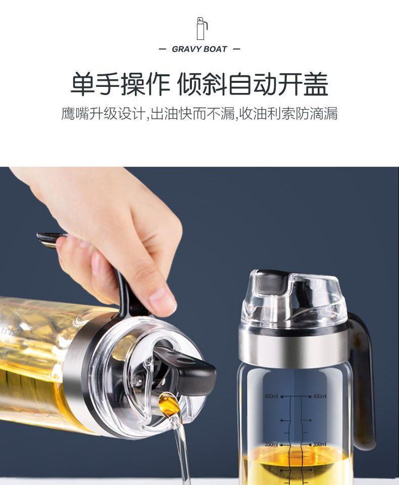 不挂壁油瓶自动开合重力油瓶耐高温防挂壁漏高硼硅玻璃大口食用油