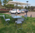 新款外贸尾货玻璃桌椅6件套带伞 阳台花园户外桌椅现货