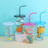 可爱恐龙图案PS弹簧吸管杯 居家日用派对狂欢饮料奶茶杯咖啡水杯
