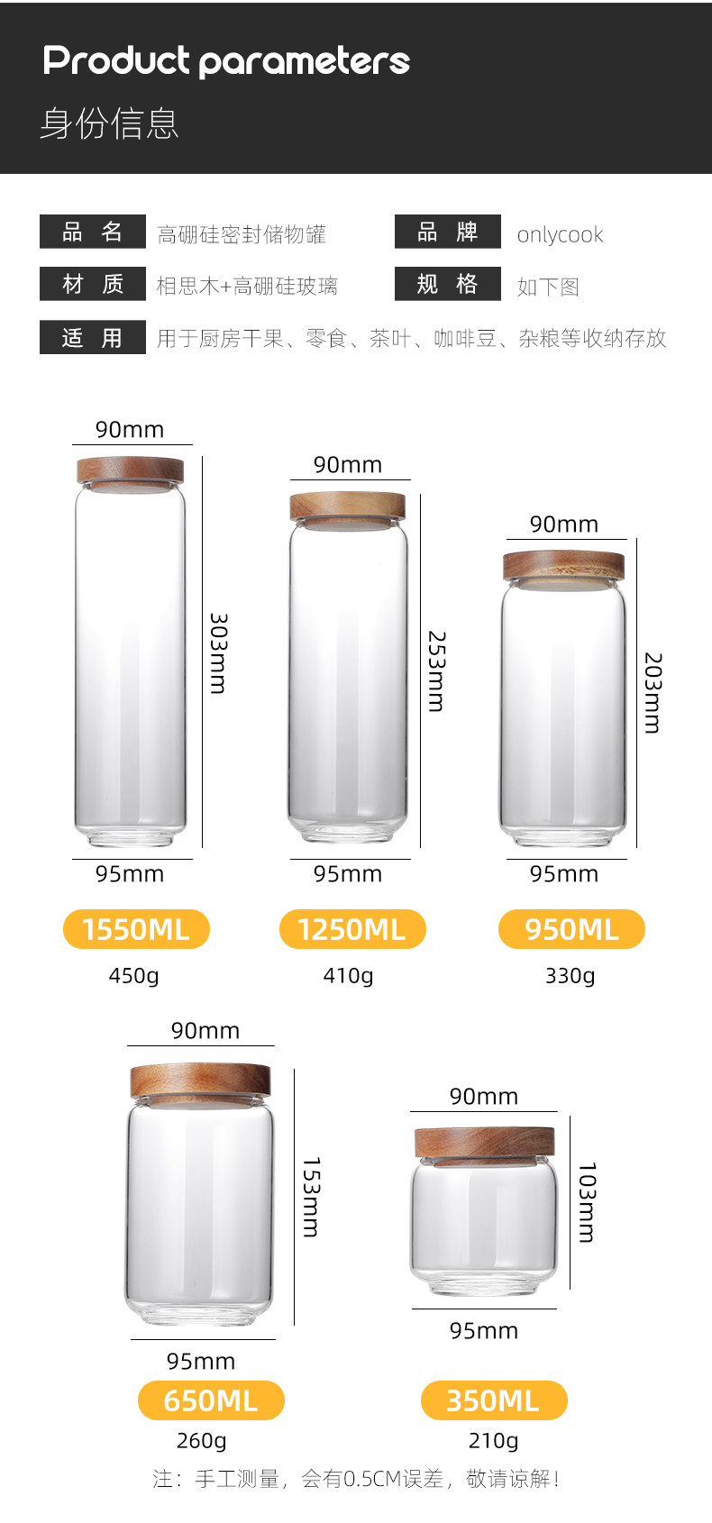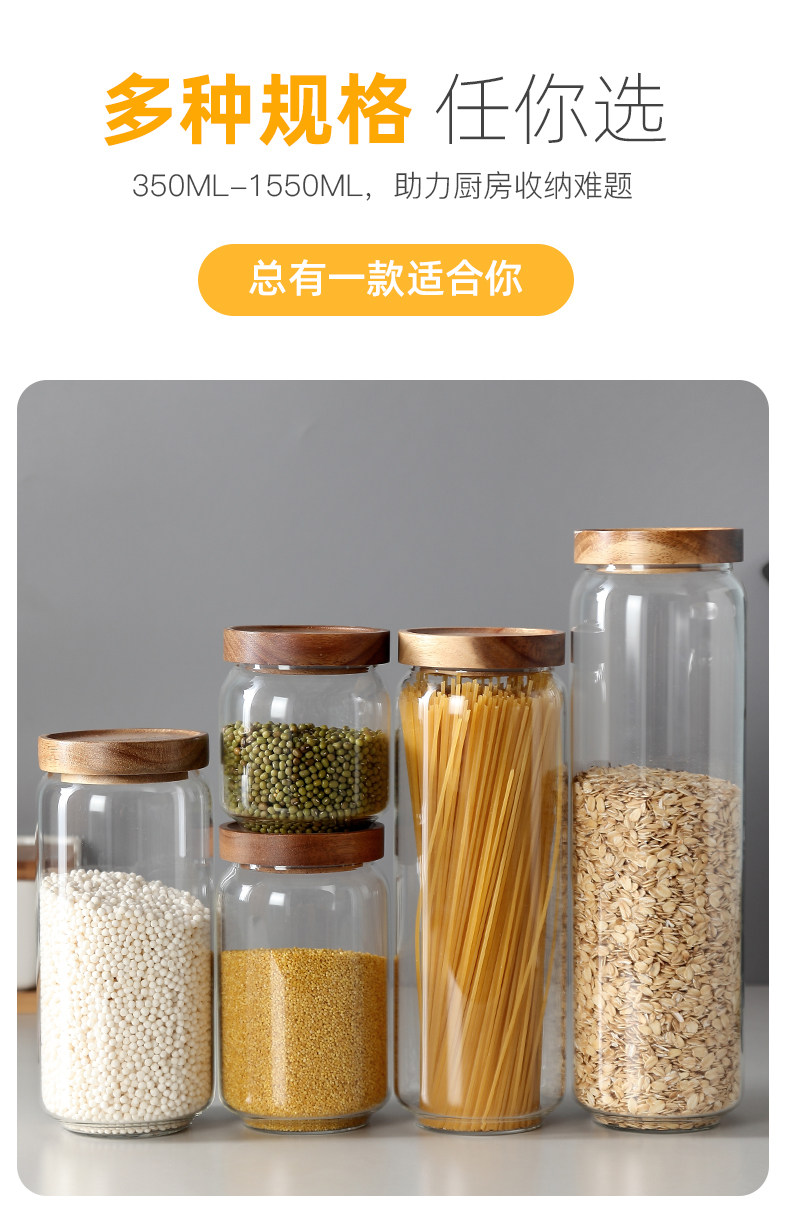 密封罐玻璃罐食品级透明玻璃瓶带盖五谷杂粮收纳罐储物罐瓶子罐子