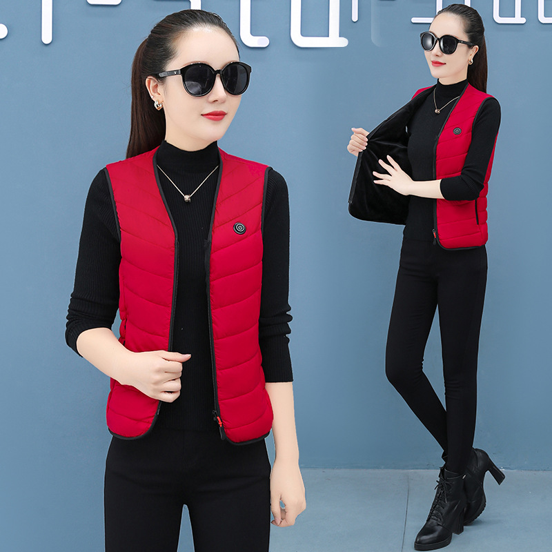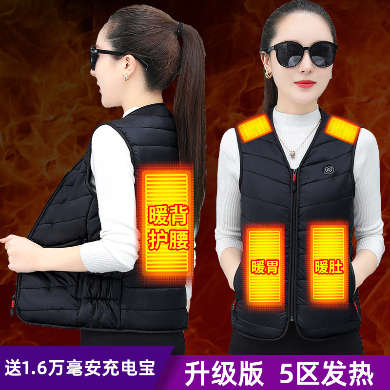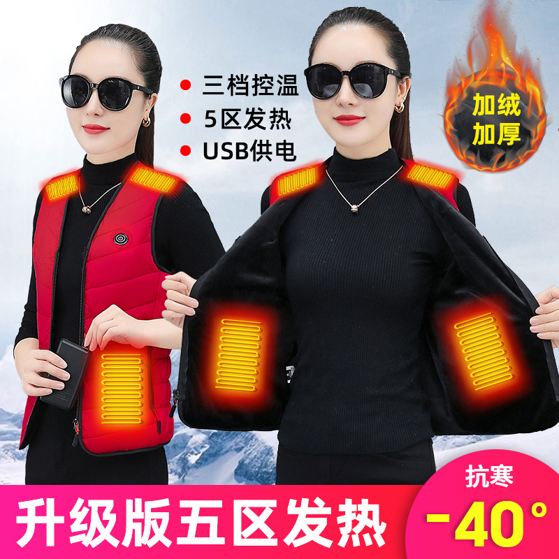 发热马夹女冬充电加热保暖加绒棉衣智能温控电热坎肩马甲背心女