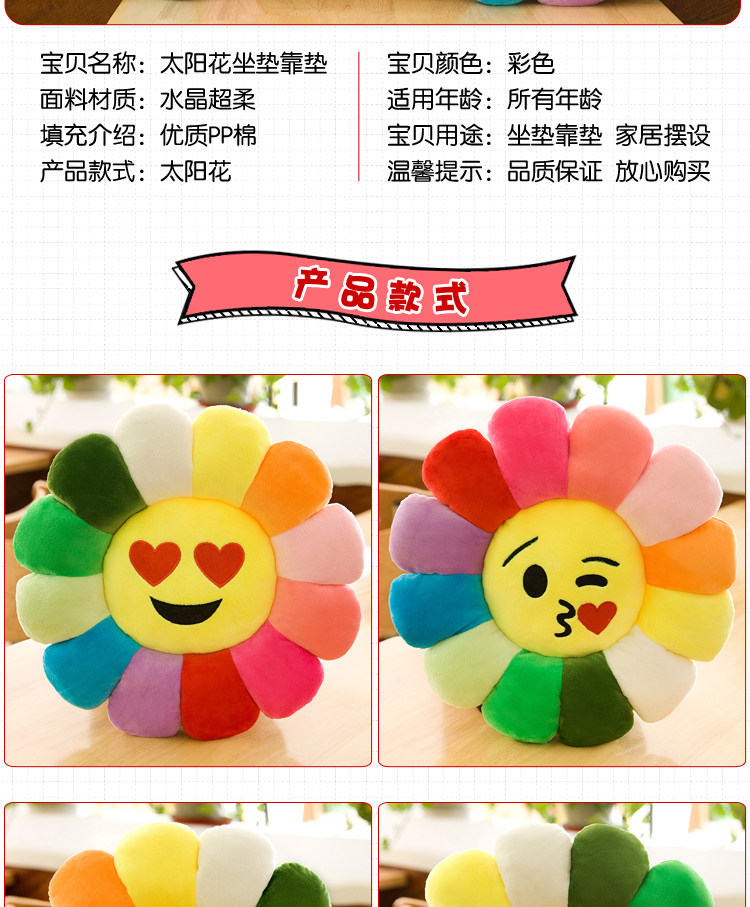 新款七彩太阳花坐垫毛绒玩具抱枕办公室屁股垫子学生幼儿园椅子垫
