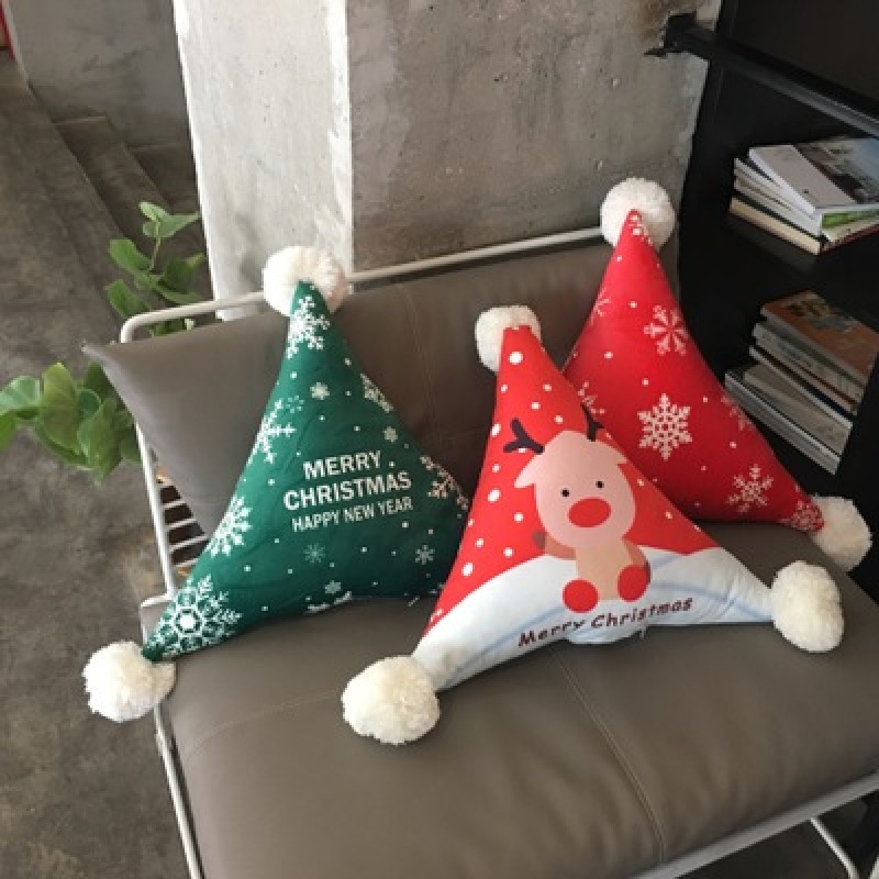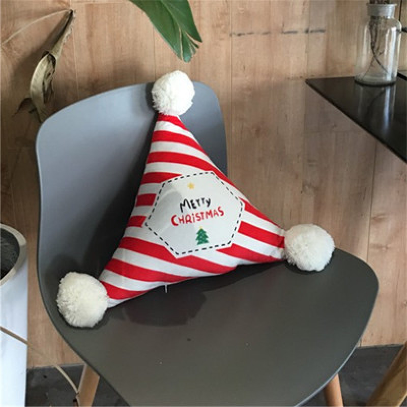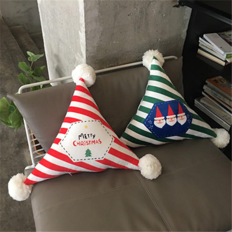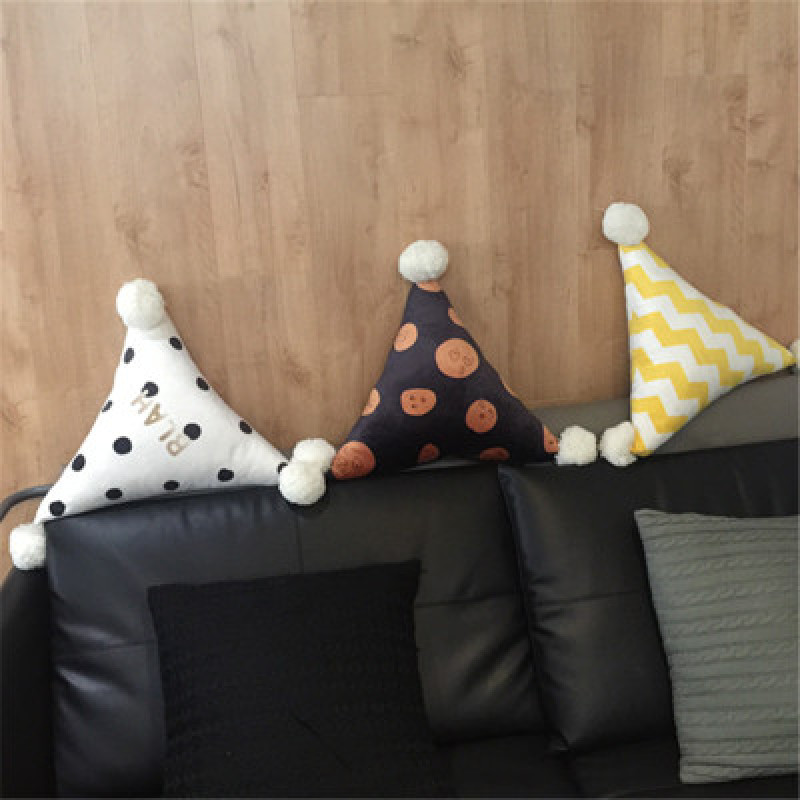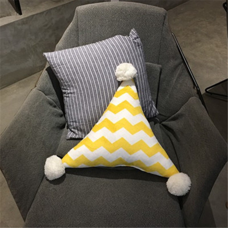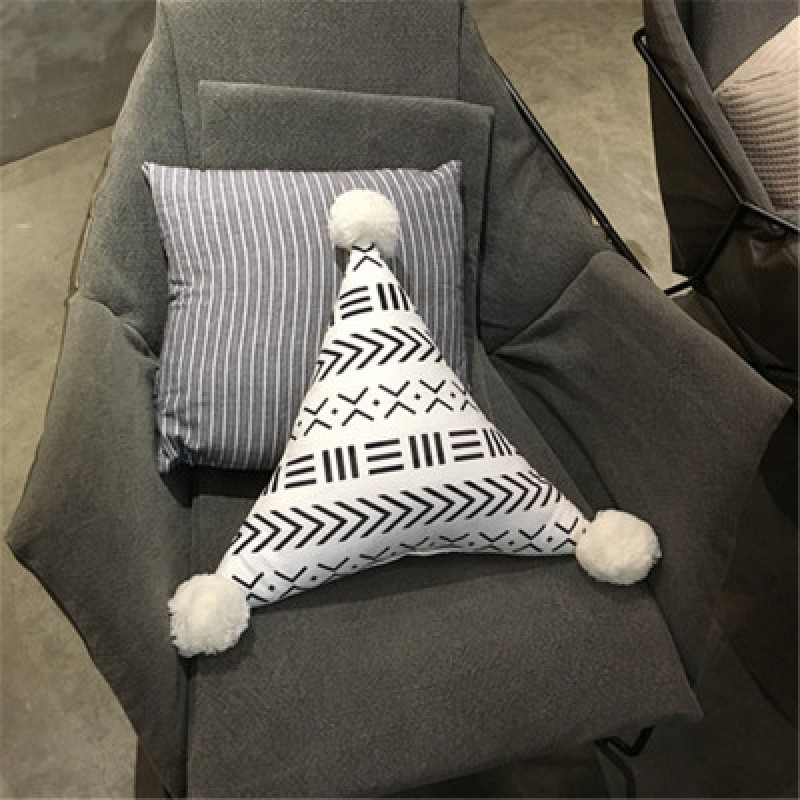 ins北欧卡通创意三角抱枕毛绒球流苏沙发靠枕汽车腰枕圣诞抱枕