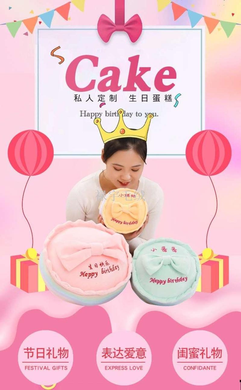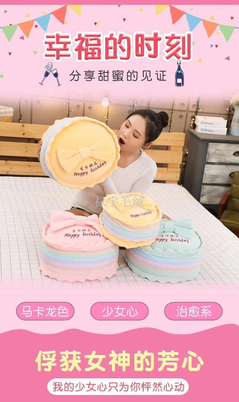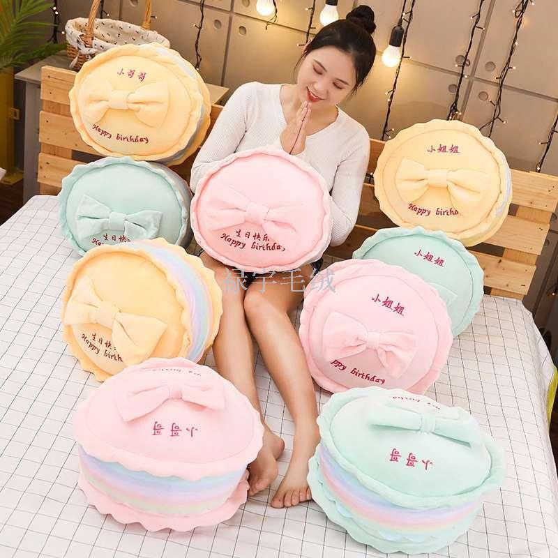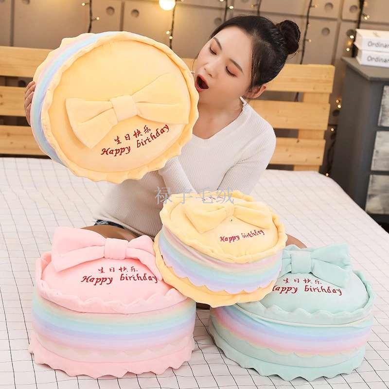 创意网红新款仿真少女心毛绒生日蛋糕玩具沙发靠垫抱枕礼物定制