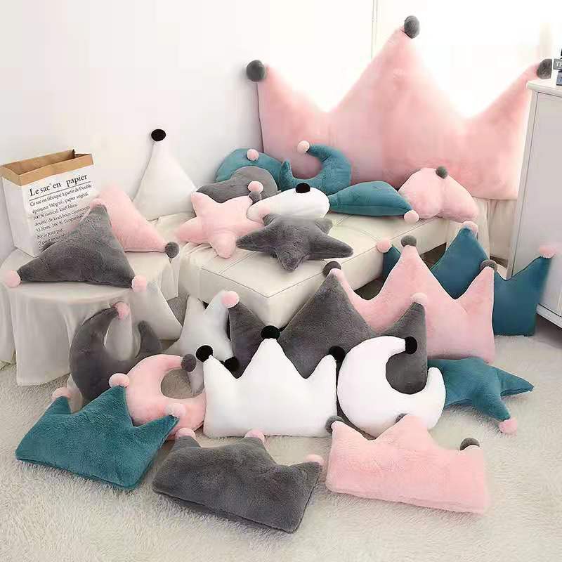 新品ins毛绒玩具星星月亮抱枕礼物皇冠沙发靠垫拍照装饰一件代发