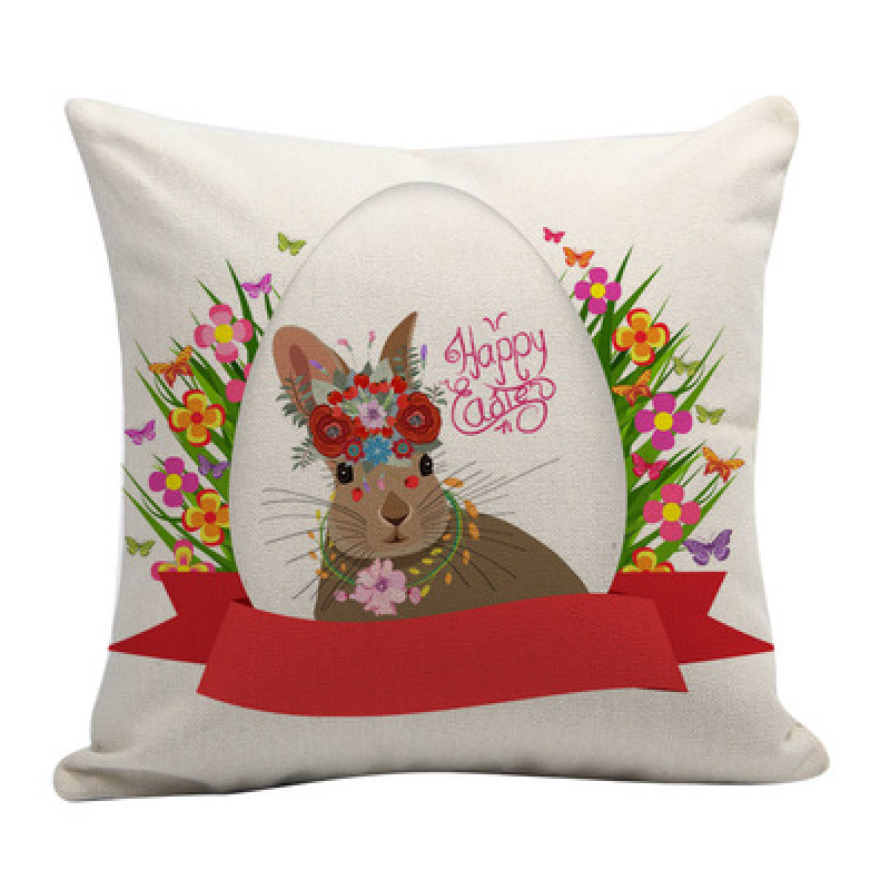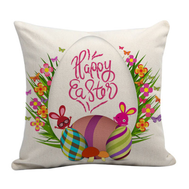 2019热销复活节兔子彩蛋图案抱枕套 沙发抱枕靠枕套 厂家可定制