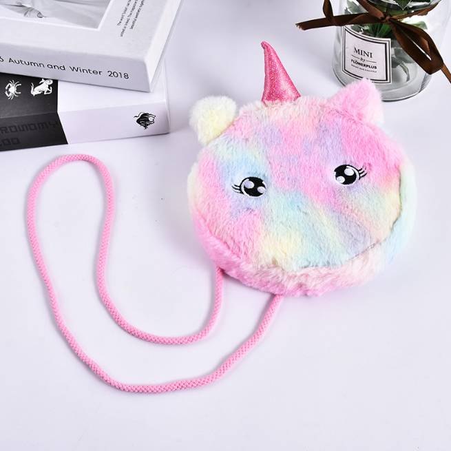 新款跨境镭射创意毛绒斜挎包卡通时尚便携式单肩包化妆包