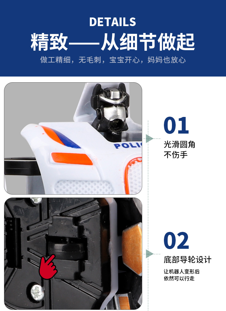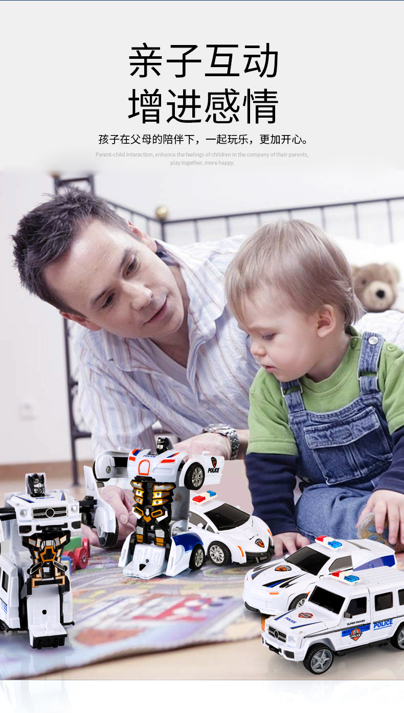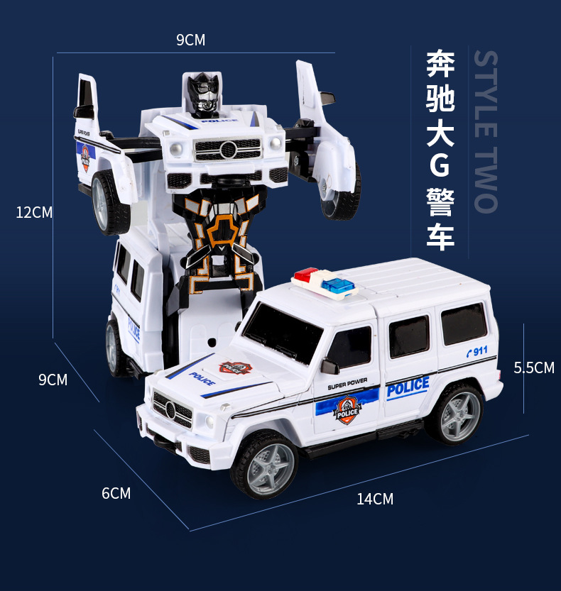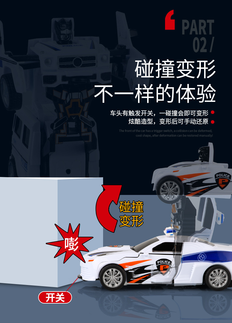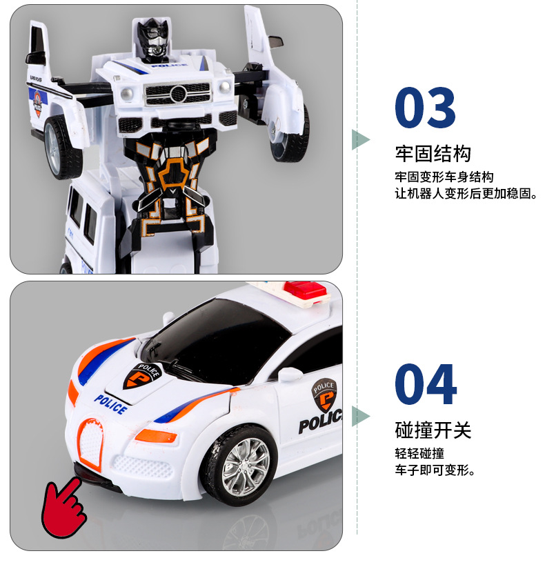 变形玩具车变形警车金刚跑车布加迪撞击变形车儿童惯性机器人汽车