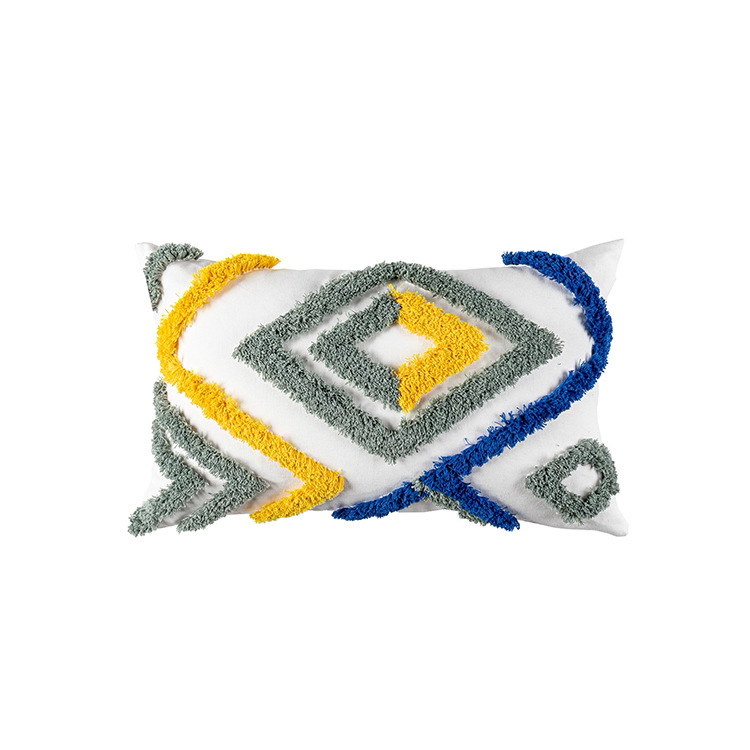 新品现代简约北欧风簇绒抱枕套几何波浪靠垫套长形沙发腰枕可定制