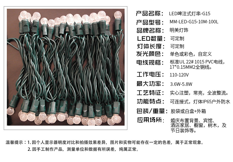 外贸专供供应 防水圆球LED啤注式灯串 户外LED圣诞树家居灯串