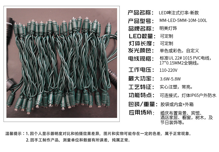 外贸专供户外IP65防水LED灯串 啤注式圣诞灯串满天星树灯彩灯串