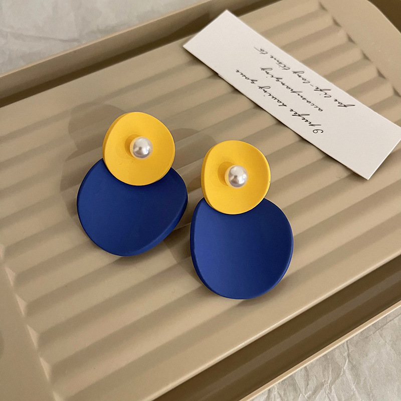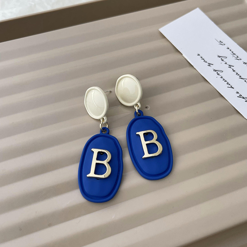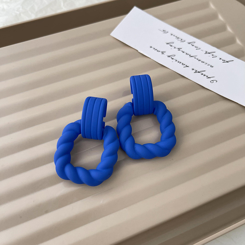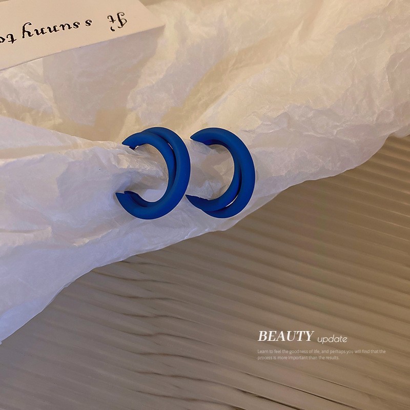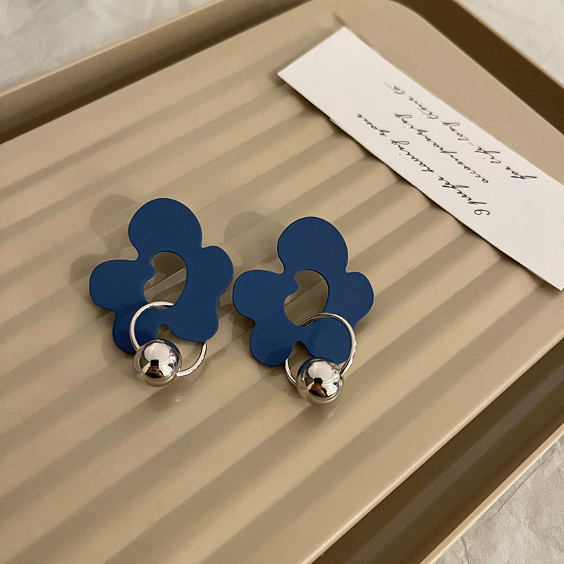 克莱因蓝耳环925银针韩国新款小众设计感耳坠个性气质高级感耳饰