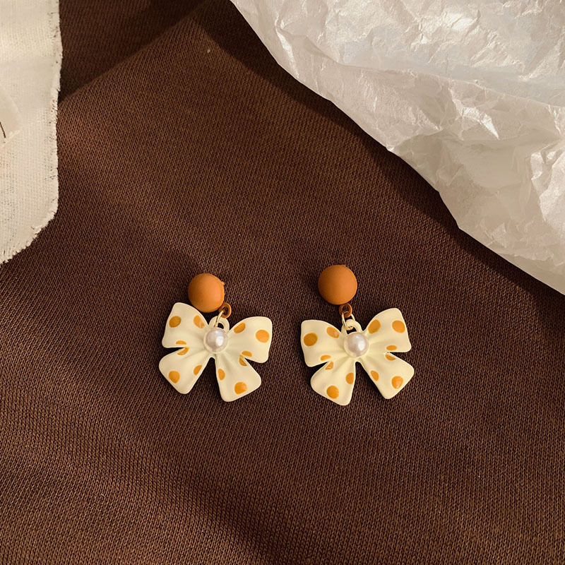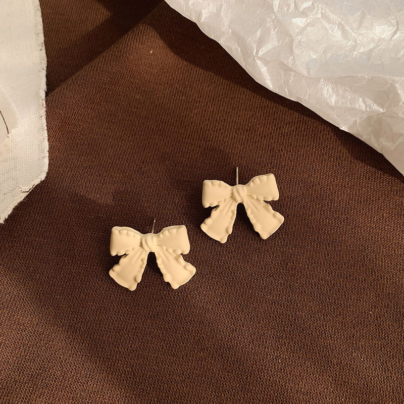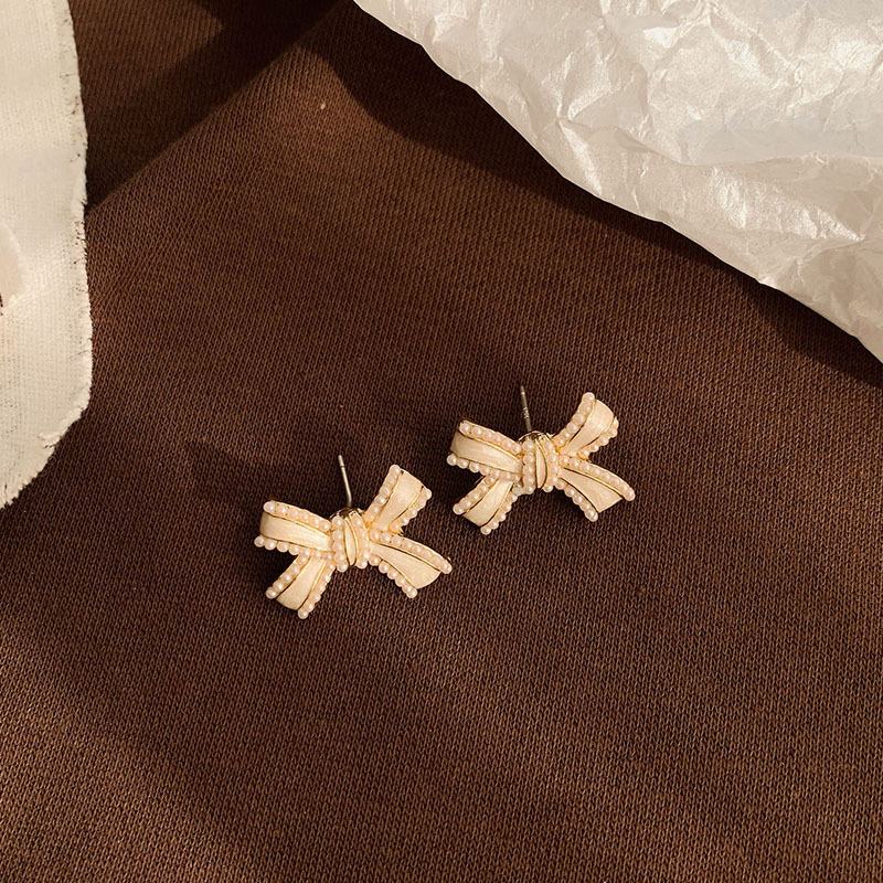 925银针秋冬复古珍珠蝴蝶结耳环韩国甜美森系耳钉简约设计耳饰女