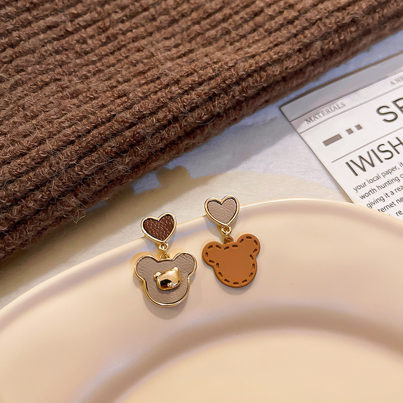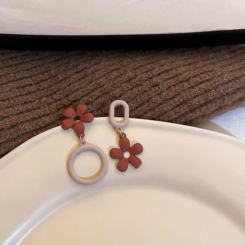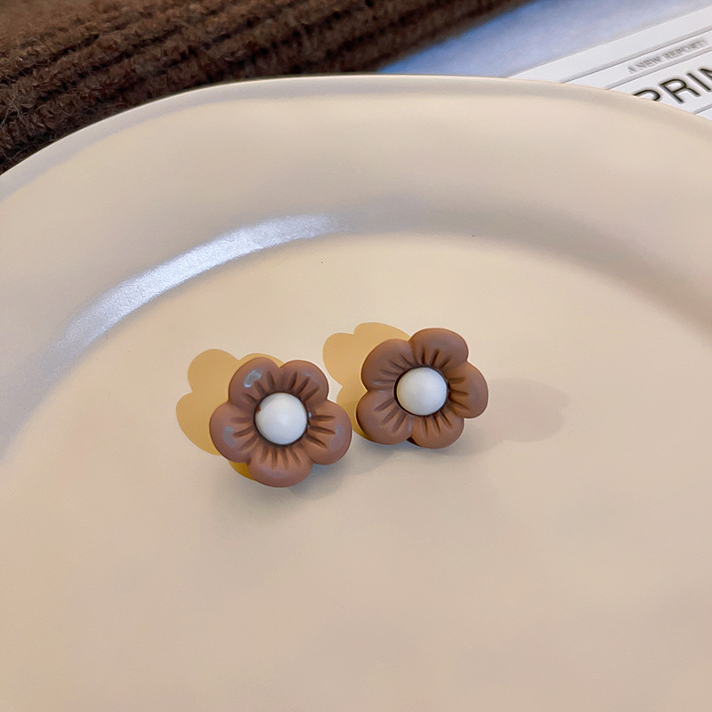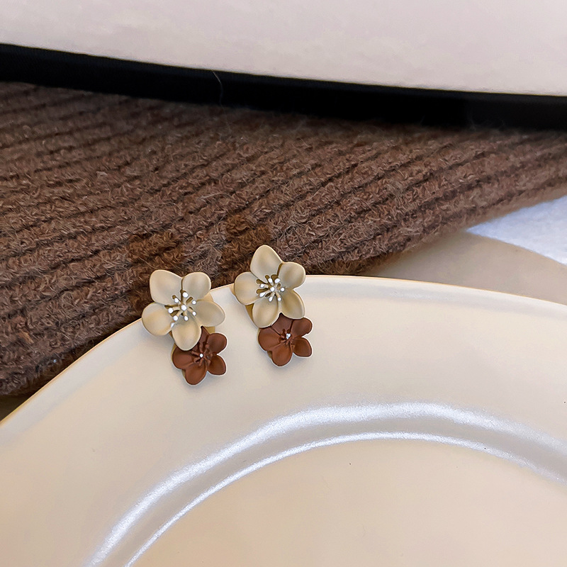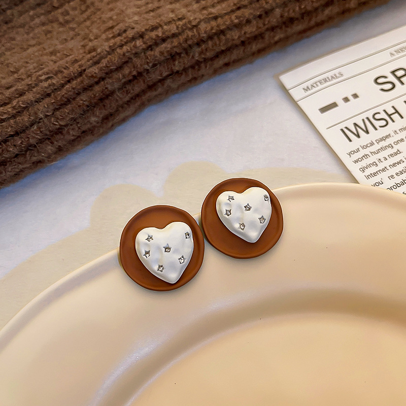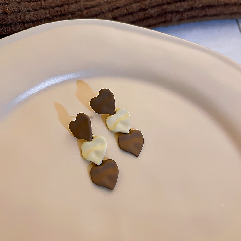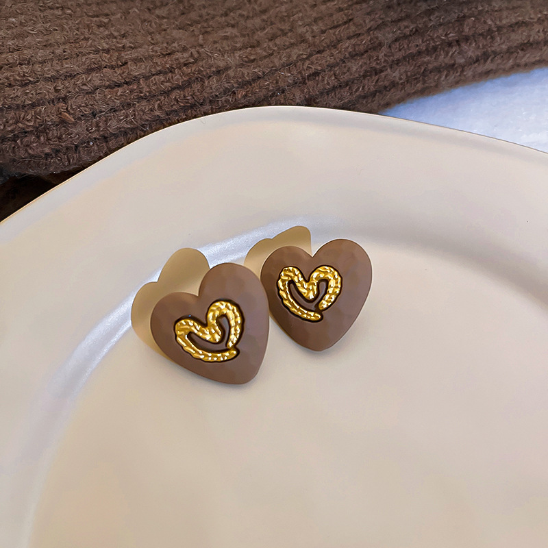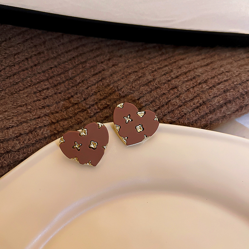 秋冬奶咖系复古耳环合集韩国ins爱心花朵耳钉少女甜美气质耳饰品