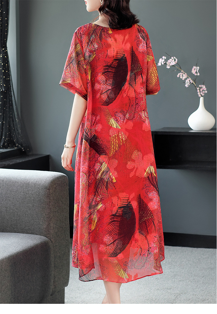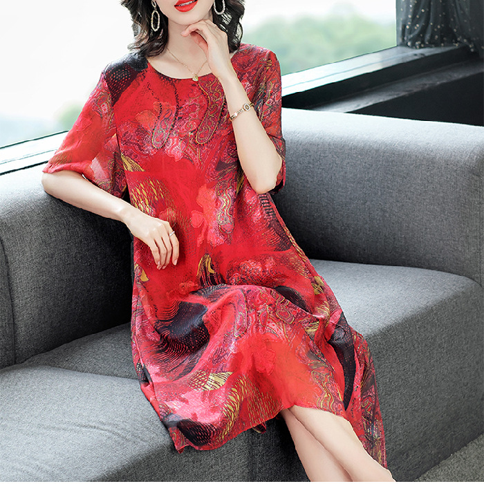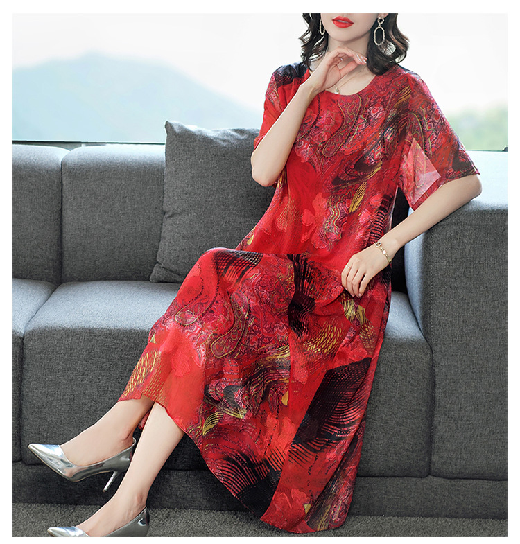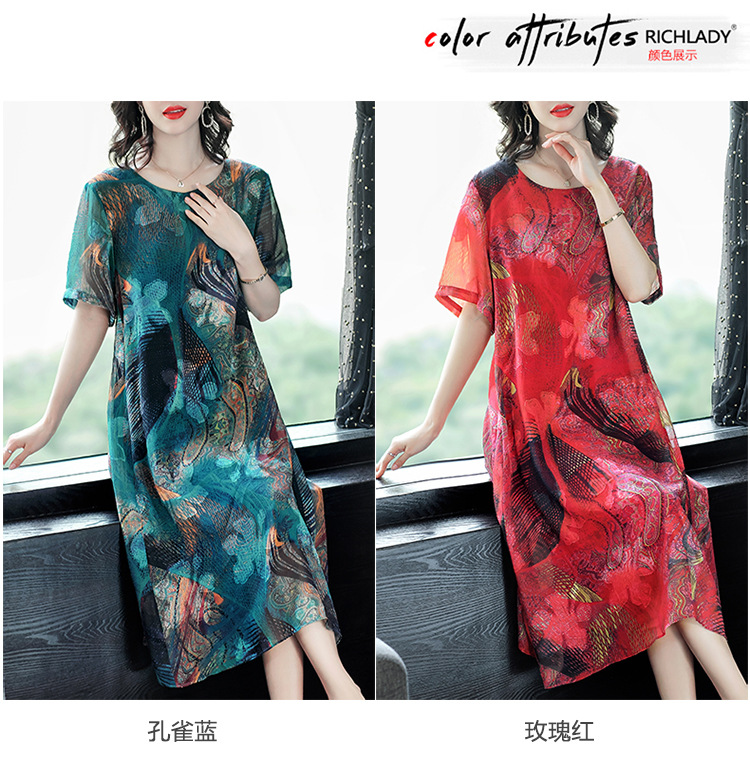 阔太太冰丝裙系列2023夏季新款大码妈妈装过膝遮肚中老年连衣裙子