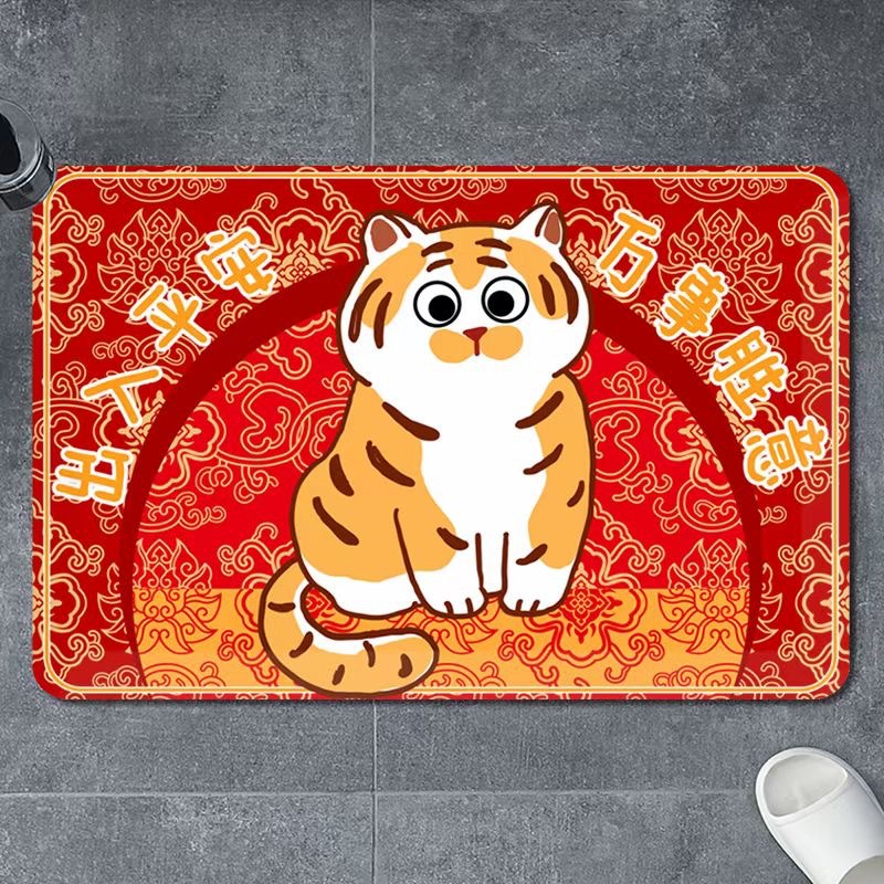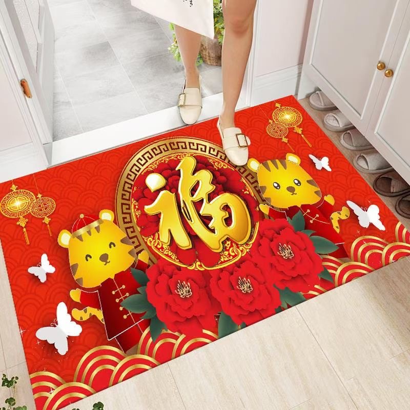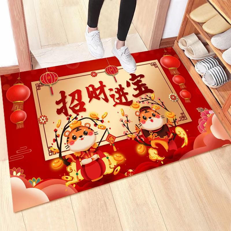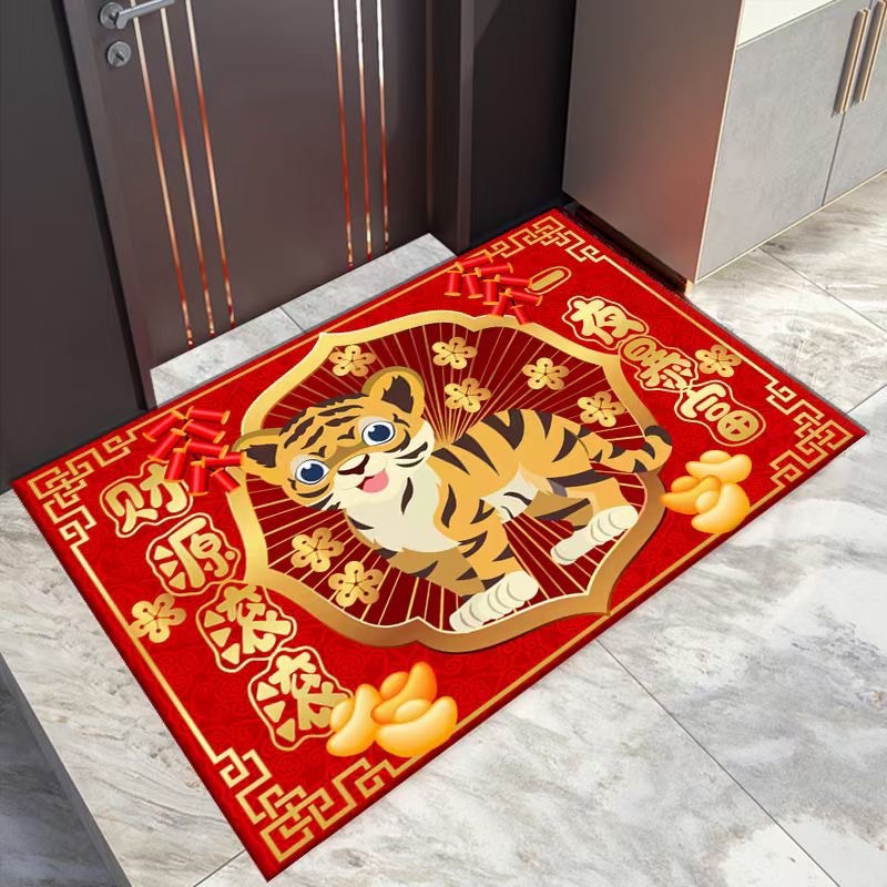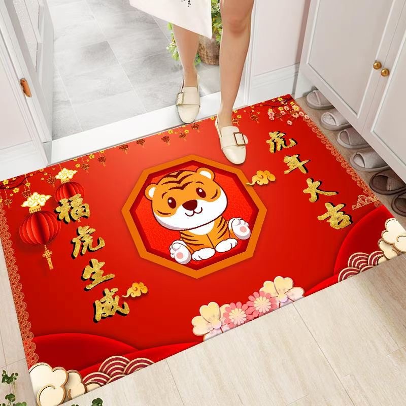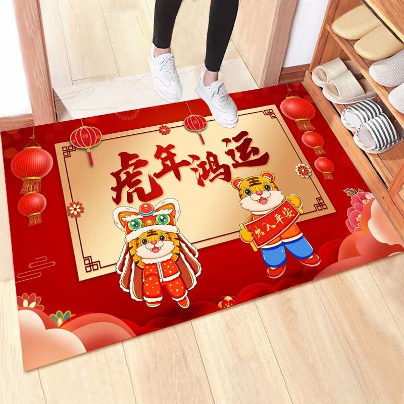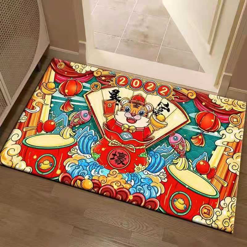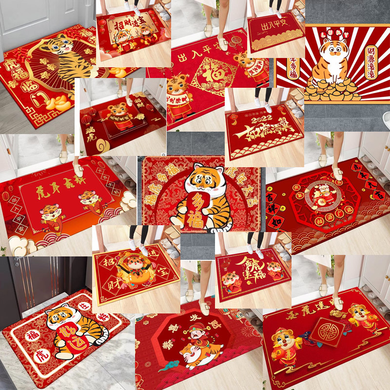 2022年新年款地垫虎年大吉红色喜庆进门垫礼品地毯厂家批发水晶绒