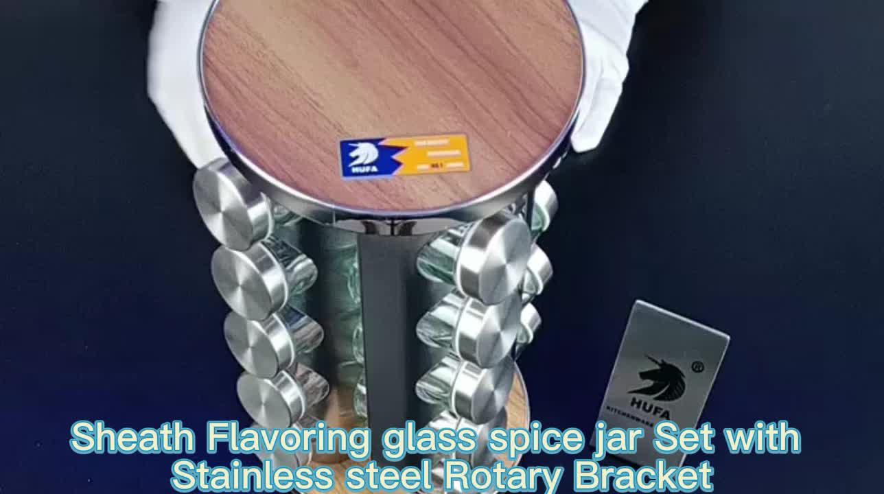 亚马逊新款厨房用品430不锈钢旋转调料罐 12瓶木质设计调味瓶套装