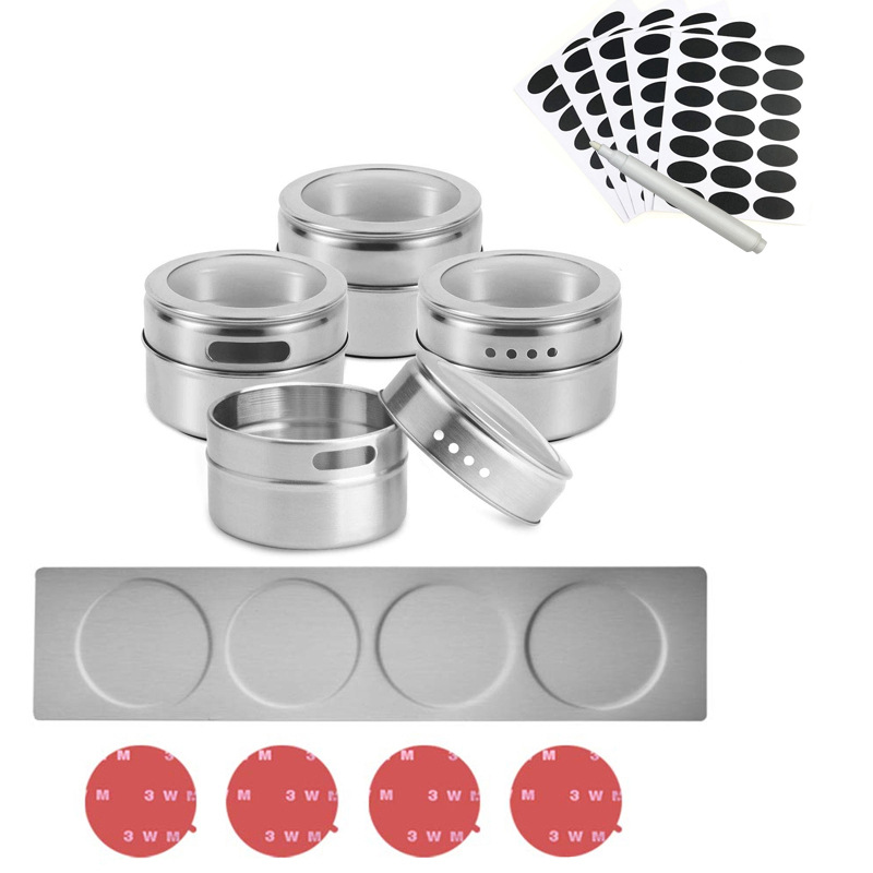 亚马逊跨境430不锈钢调味罐12件套厨房旋转调料瓶套装一件代发...