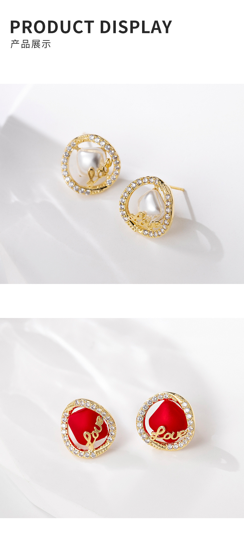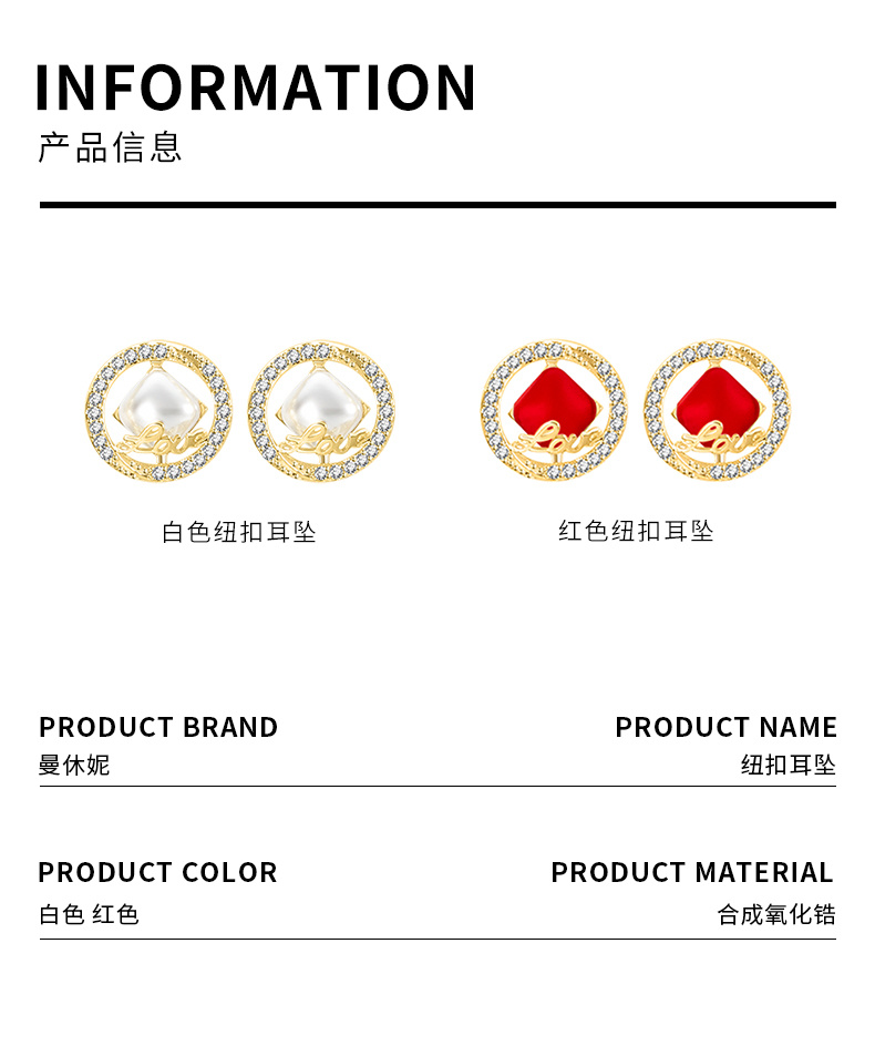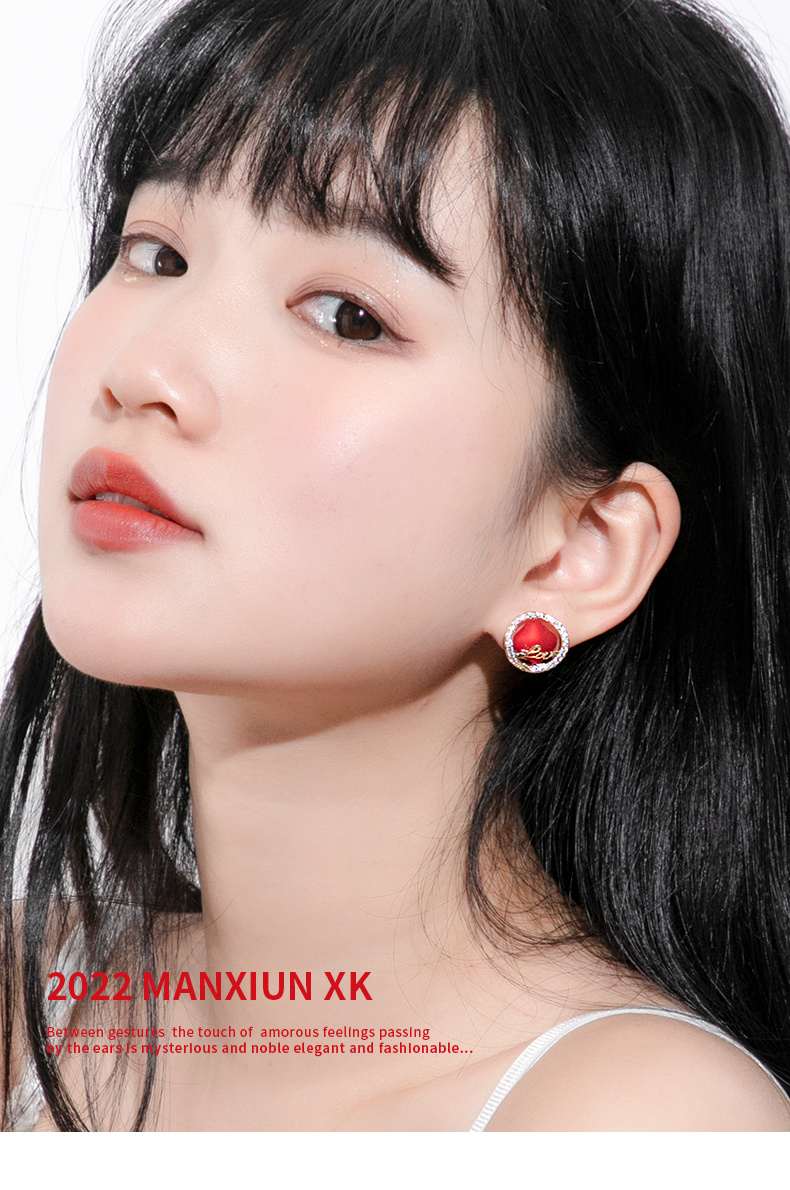 厂家曼休妮新款红色喜庆新年耳环高级感字母耳坠新娘耳饰LOVE耳钉