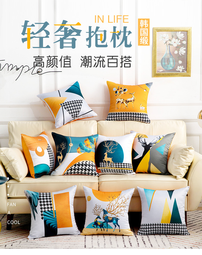 厂家批发简约沙发抱枕客厅床头靠枕橙色靠垫套长方形护腰靠背欧式