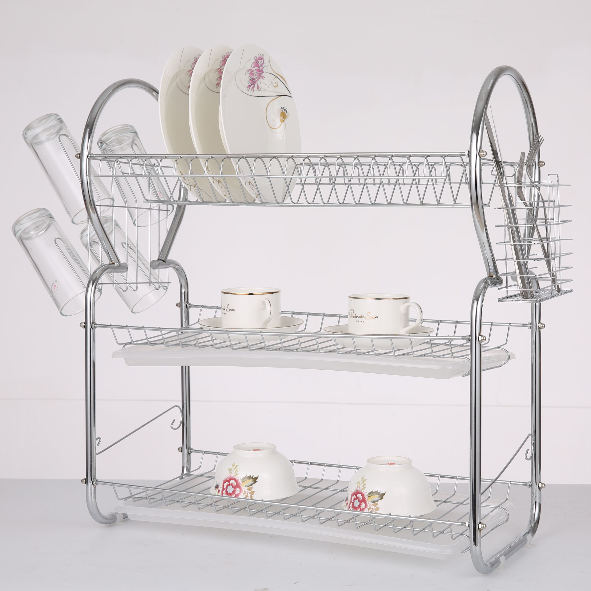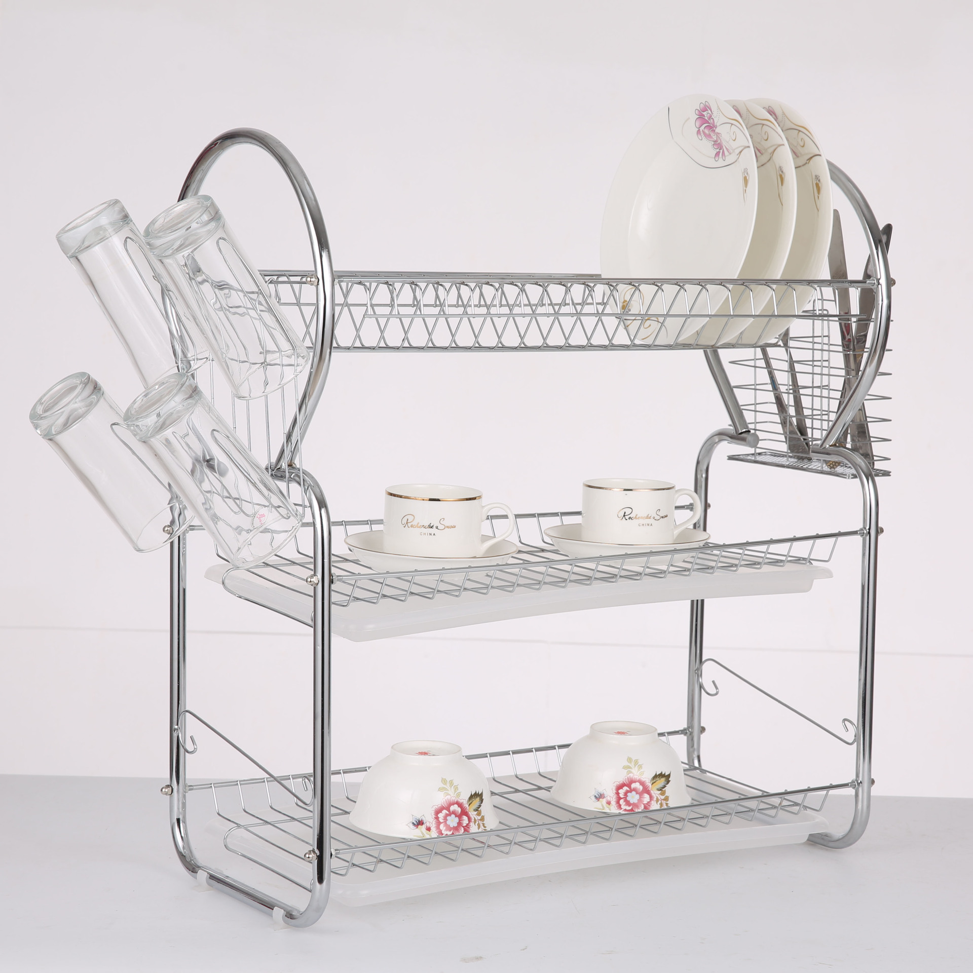 跨境家居落地蔬菜置物碗碟架 三层碗架 厨房收纳置碗架..