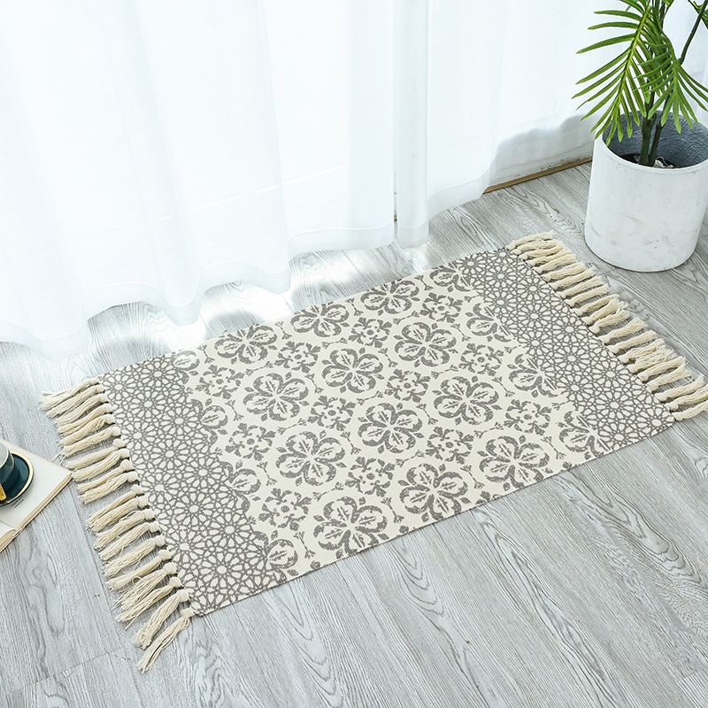 毓喜民族风棉麻地毯卧室客厅门口地垫流苏地毯吸湿坐垫榻榻米地垫