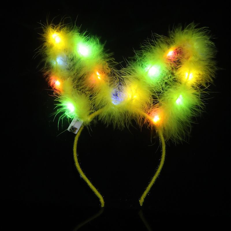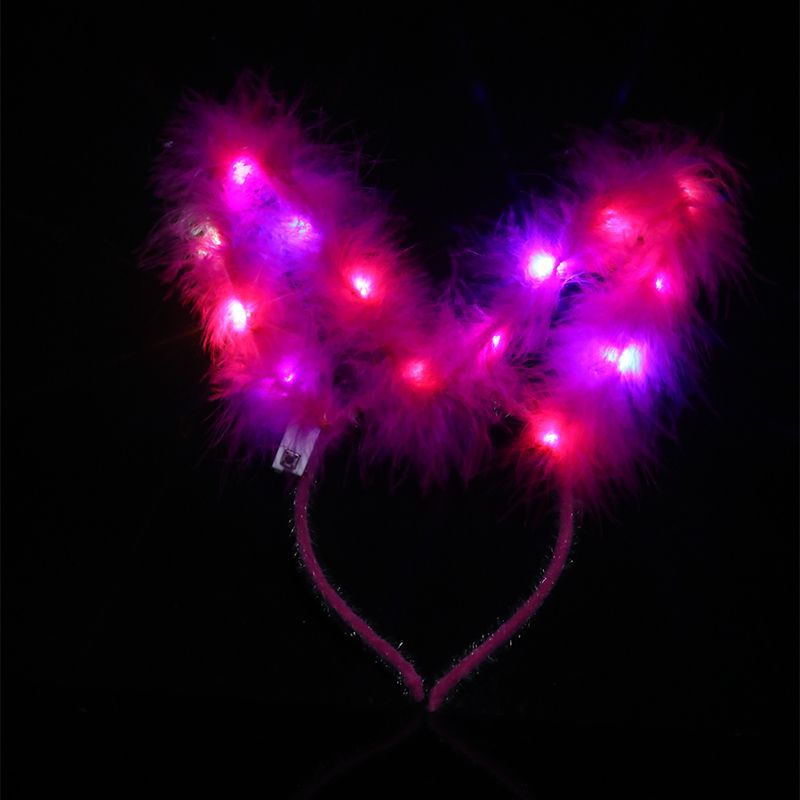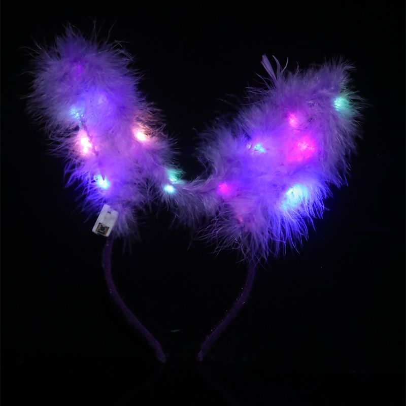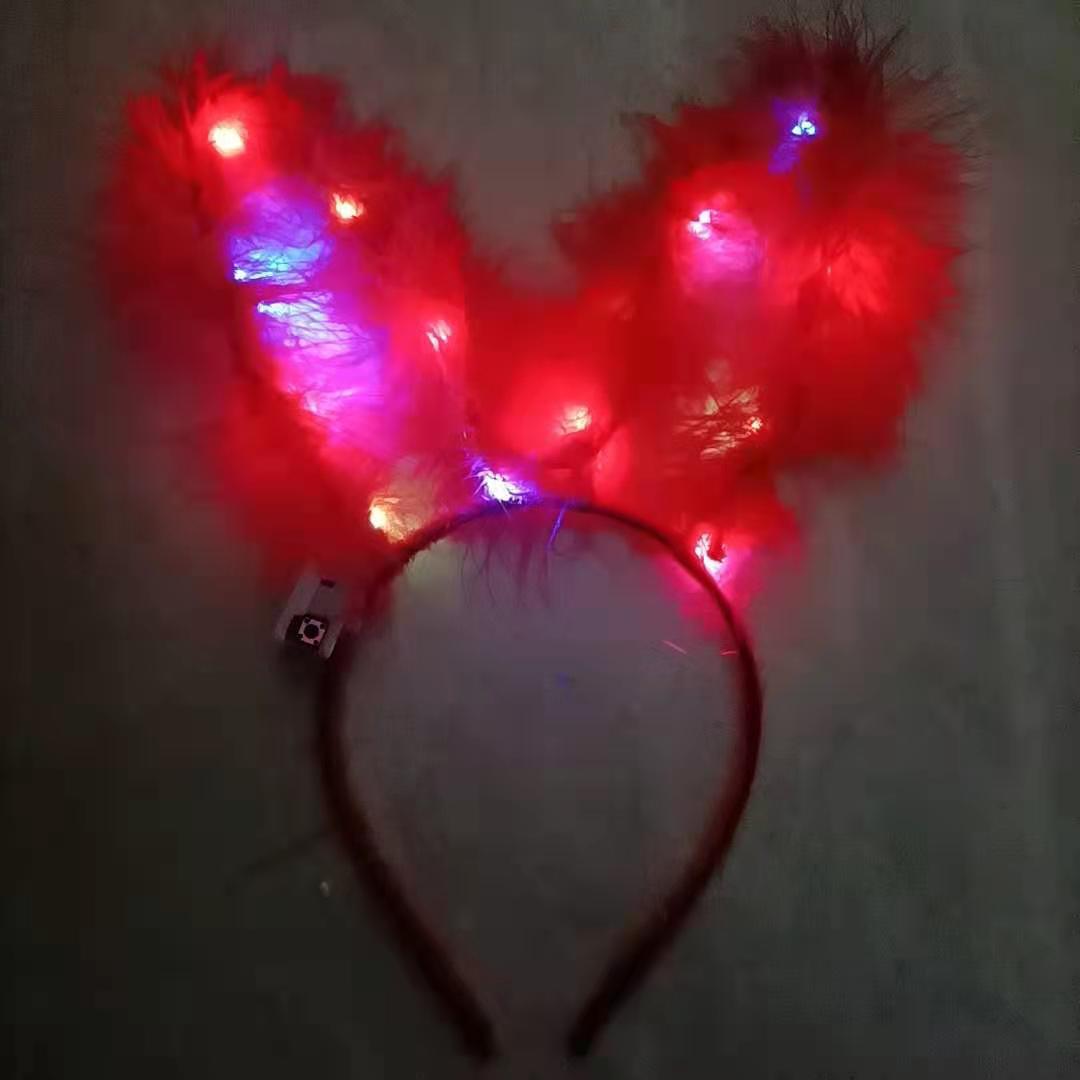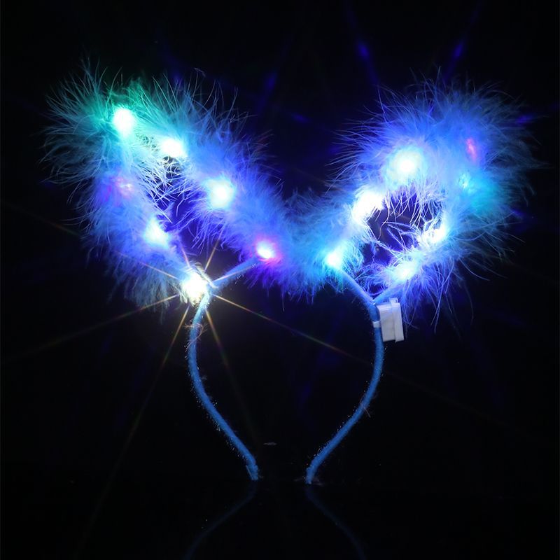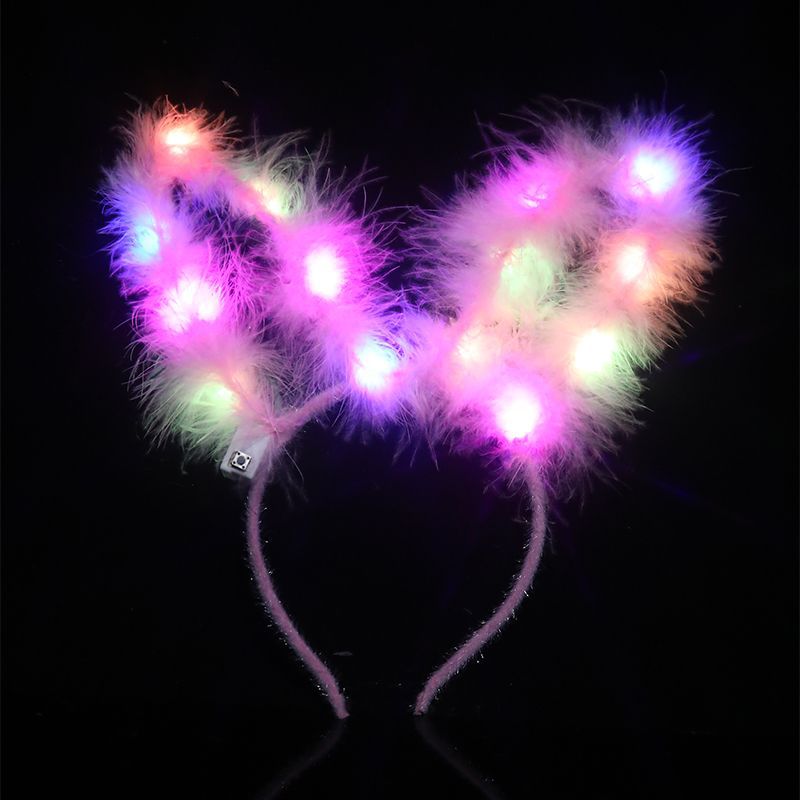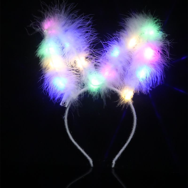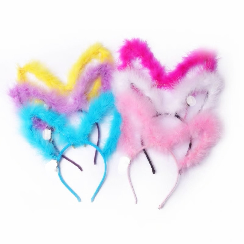 发亮羽毛兔耳朵发光发箍 毛绒金丝猫耳朵头箍地摊玩具地推礼品