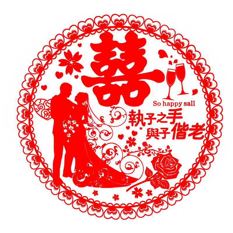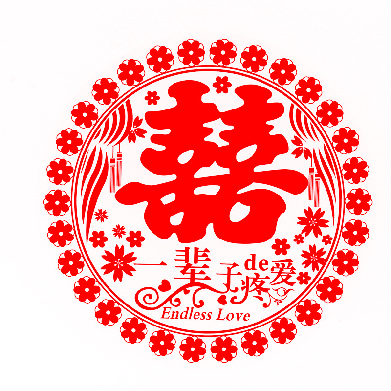 批发婚庆用品 压床门窗家具喜字贴 房车窗花 剪纸装饰 结婚静电喜