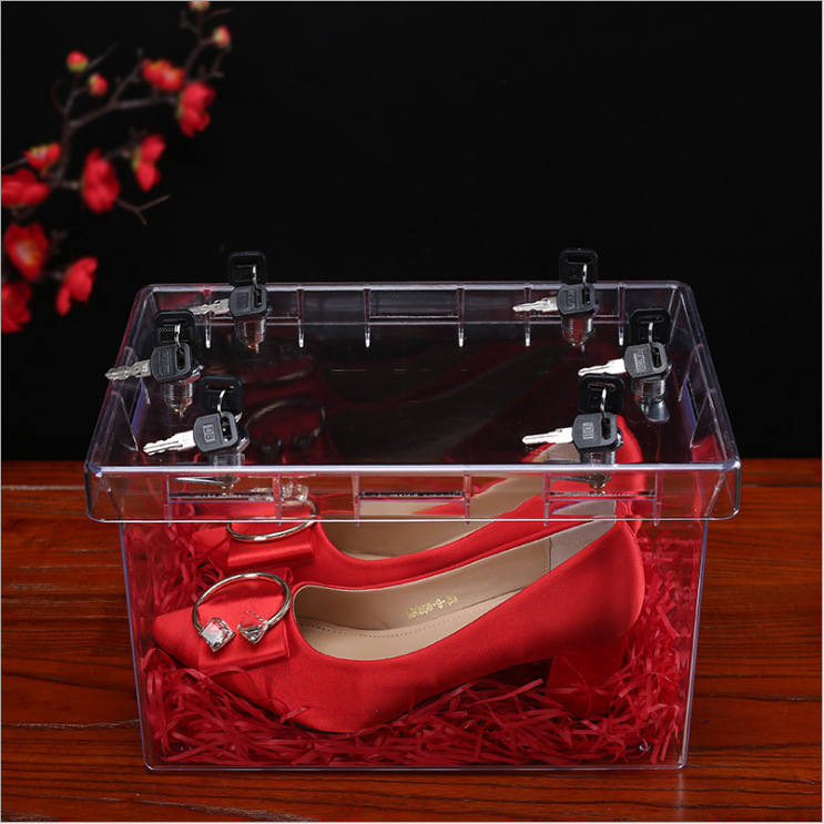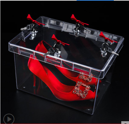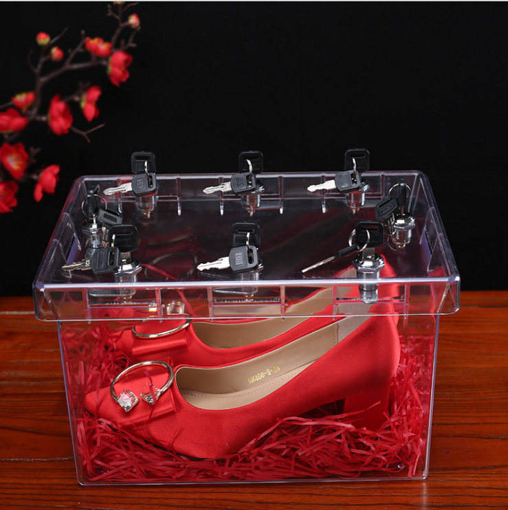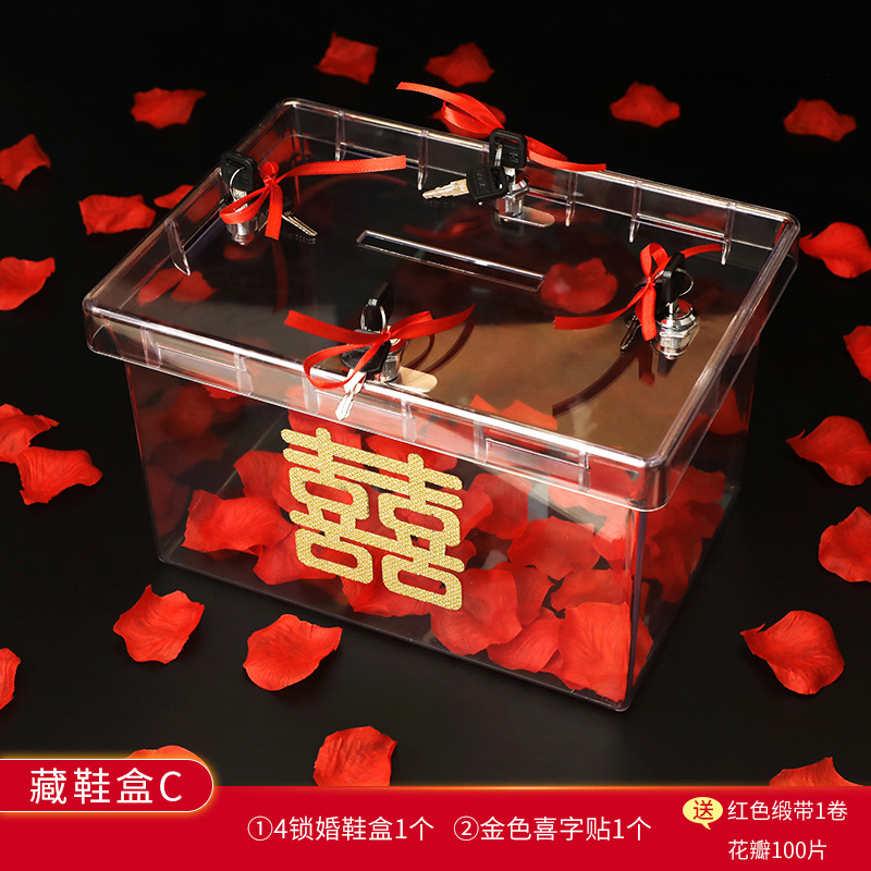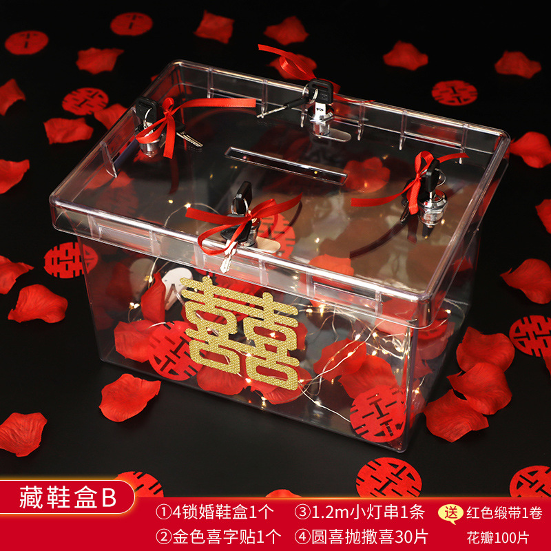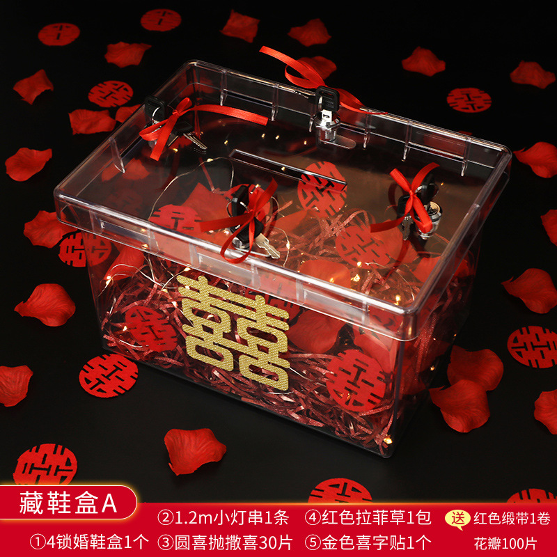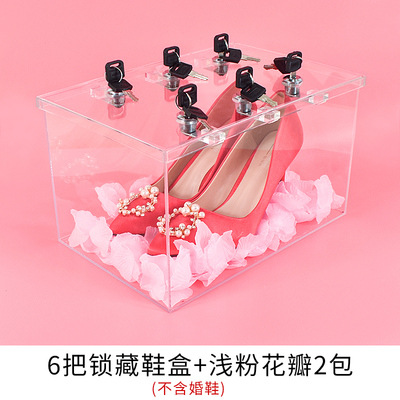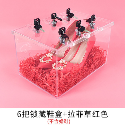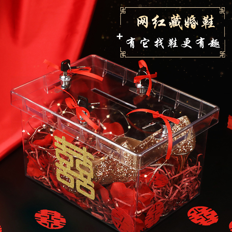 抖音接亲堵门游戏结婚藏鞋神器道具透明带锁鞋盒子婚庆整蛊新郎