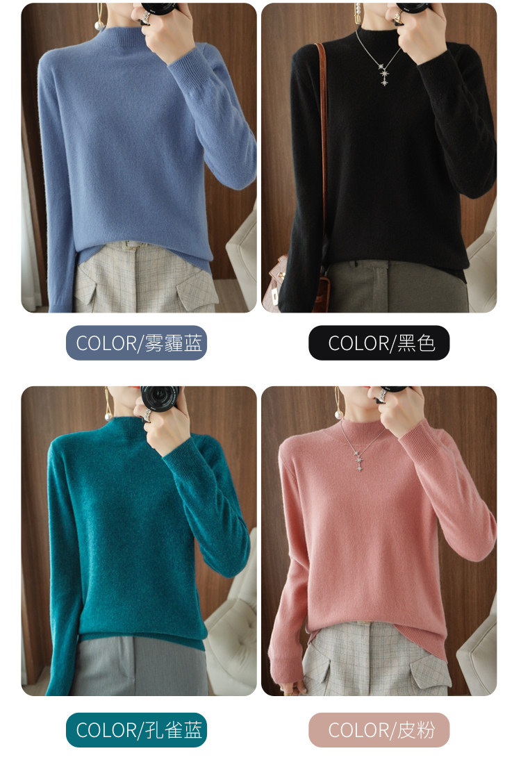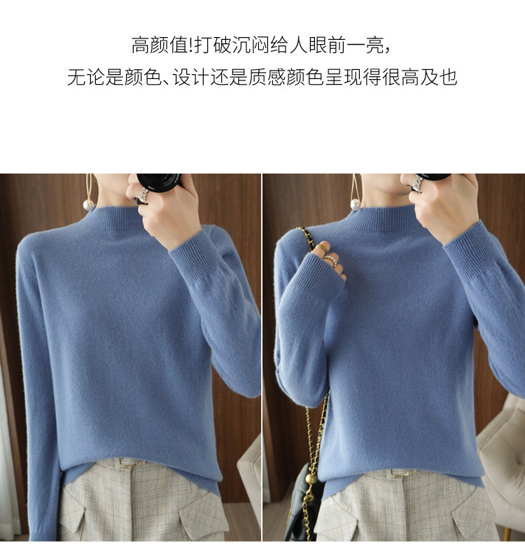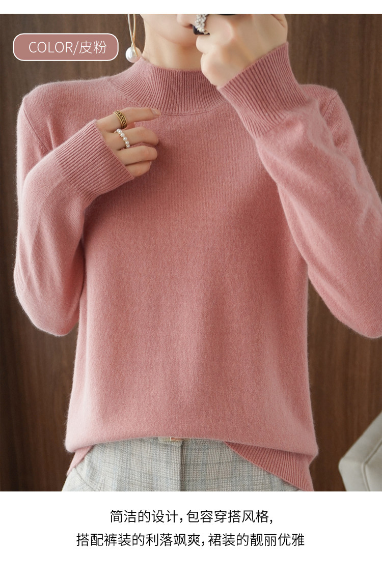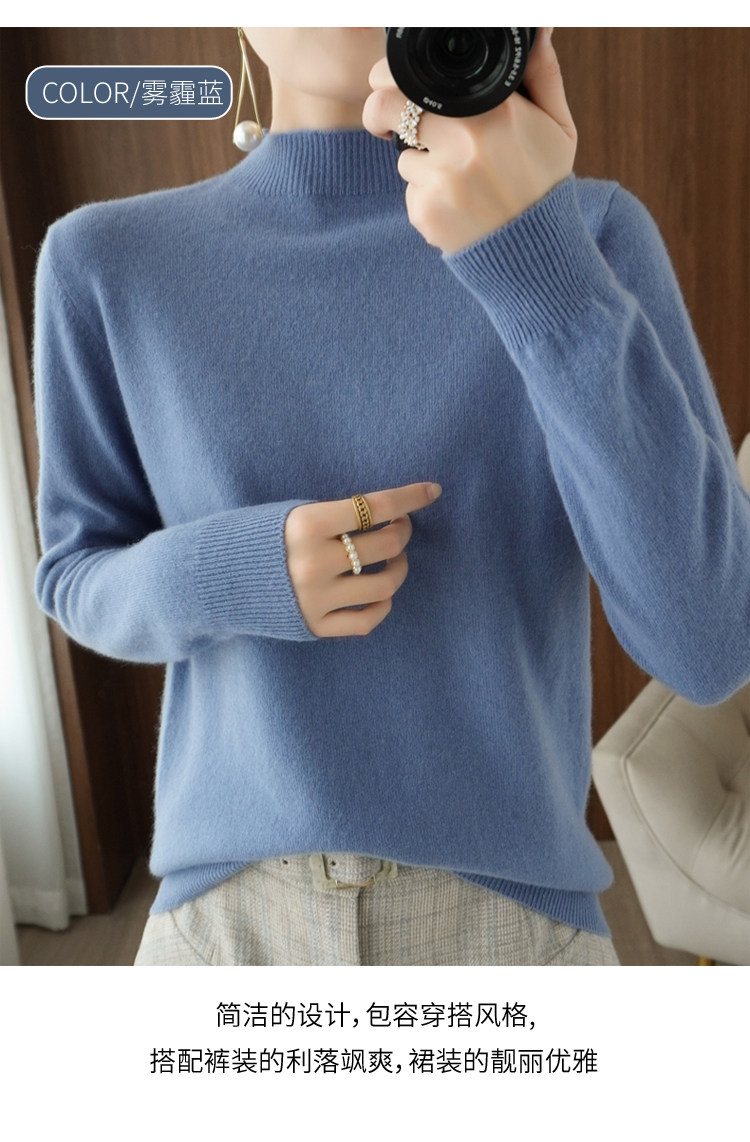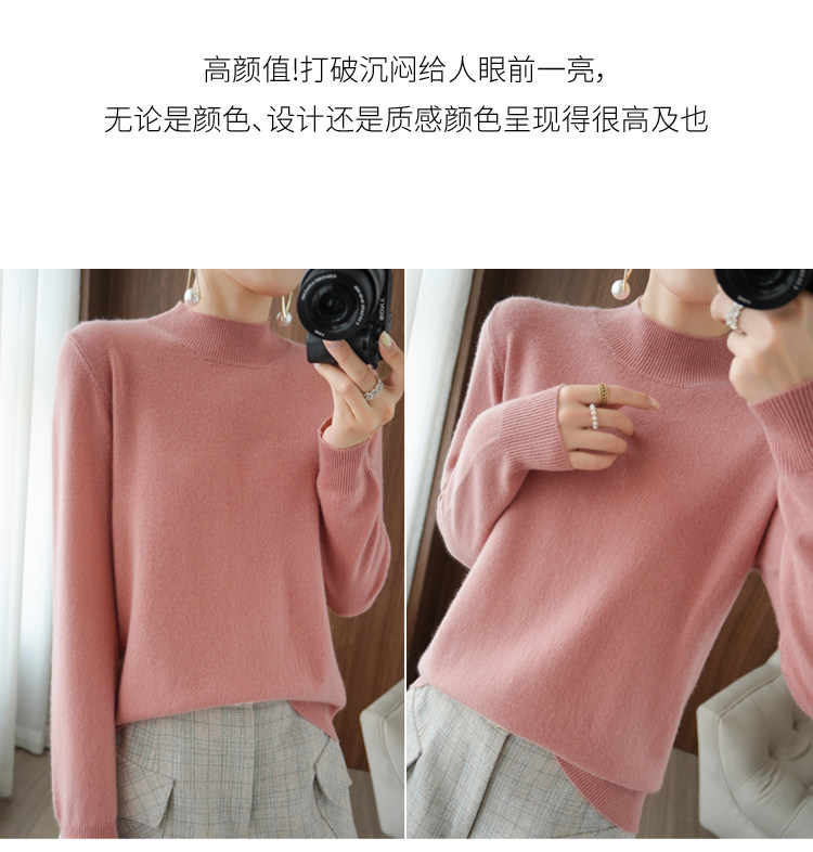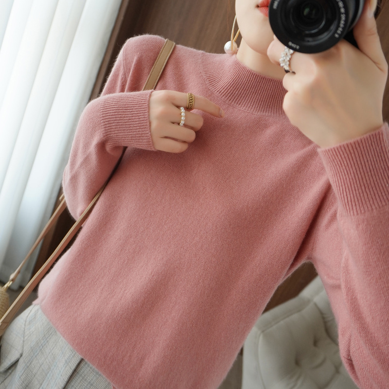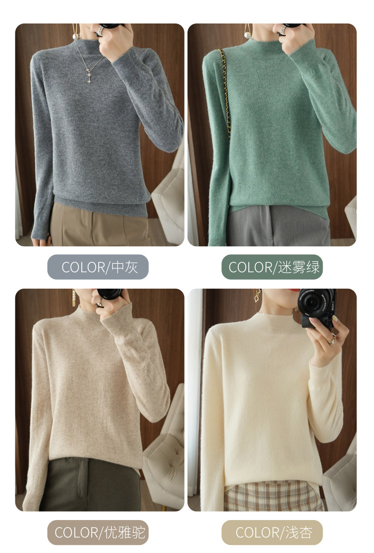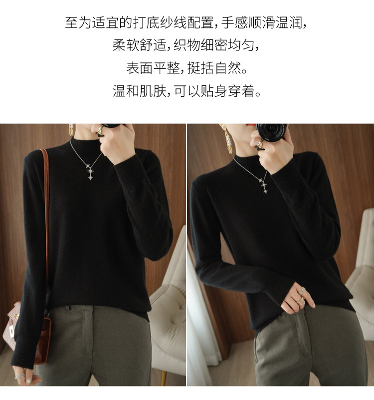 半中高领毛衣女羊毛秋冬加厚新款内搭打底衫洋气套头学生针织宽松