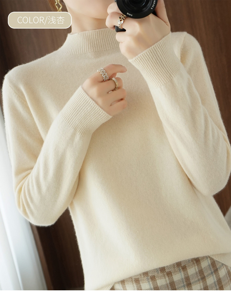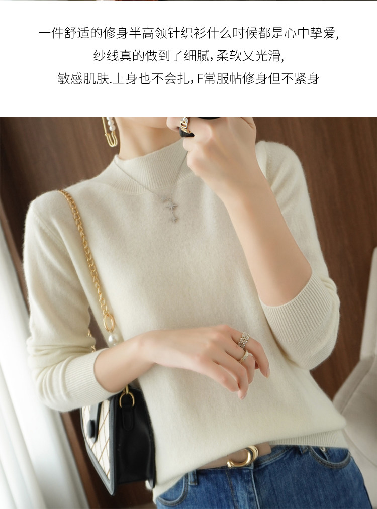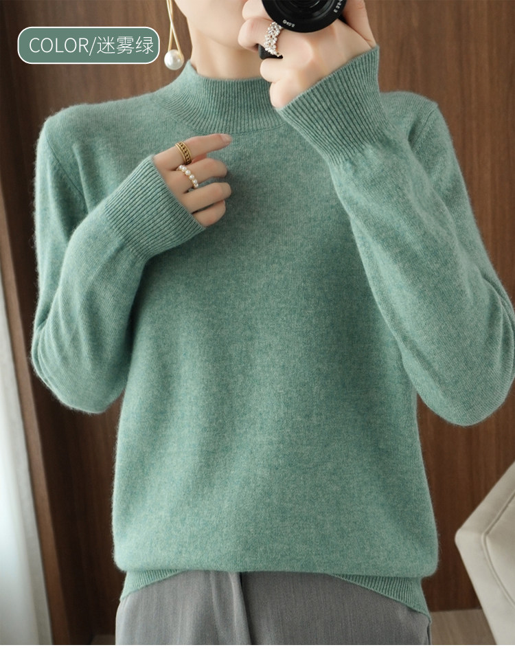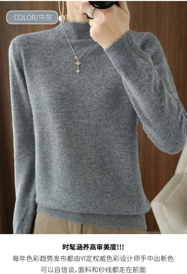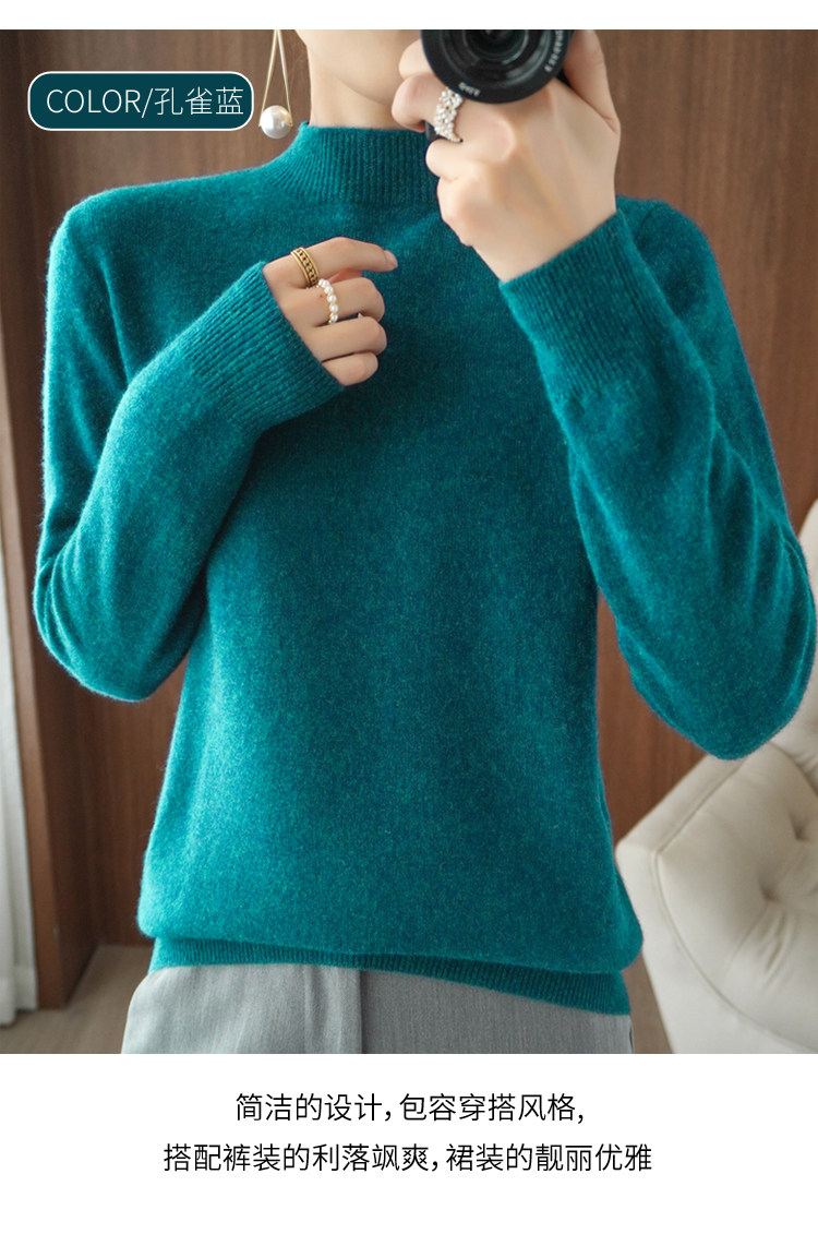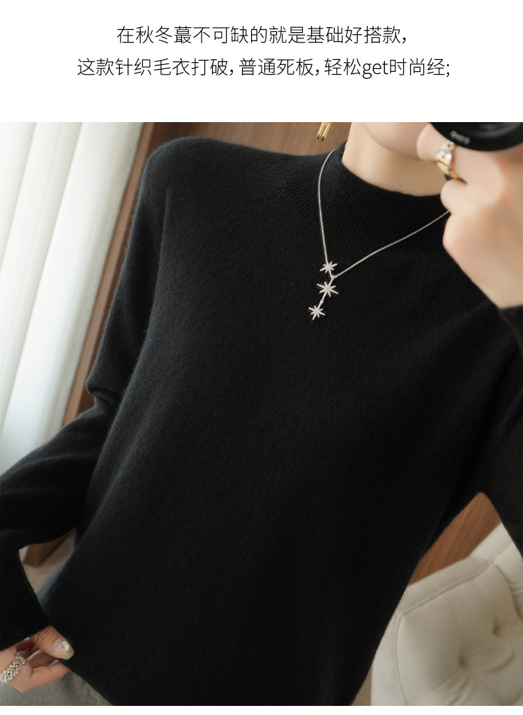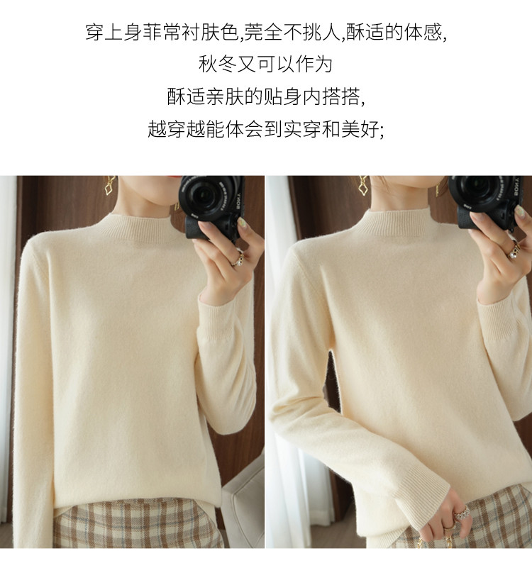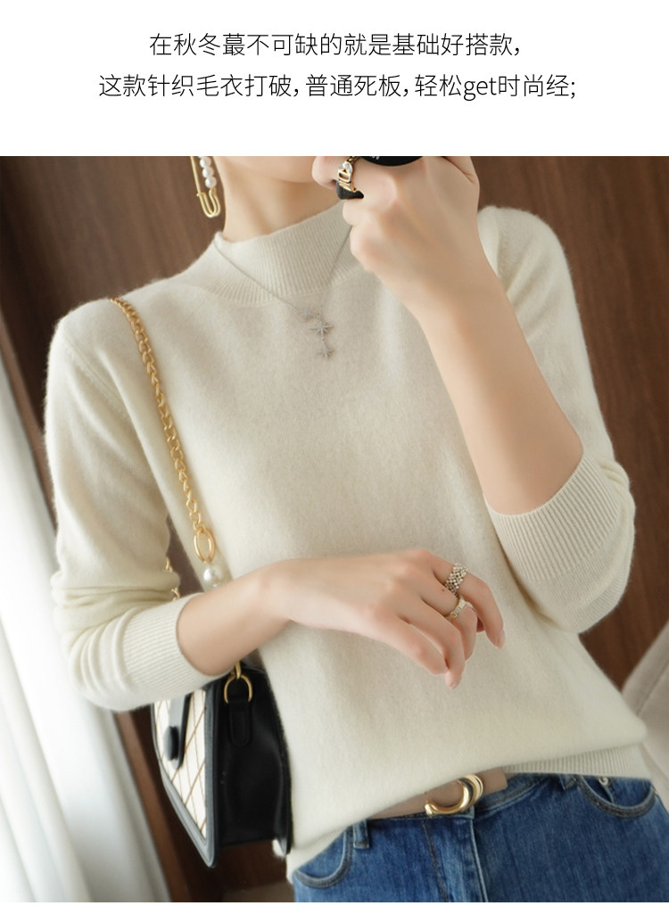 半中高领毛衣女羊毛秋冬加厚新款内搭打底衫洋气套头学生针织宽松