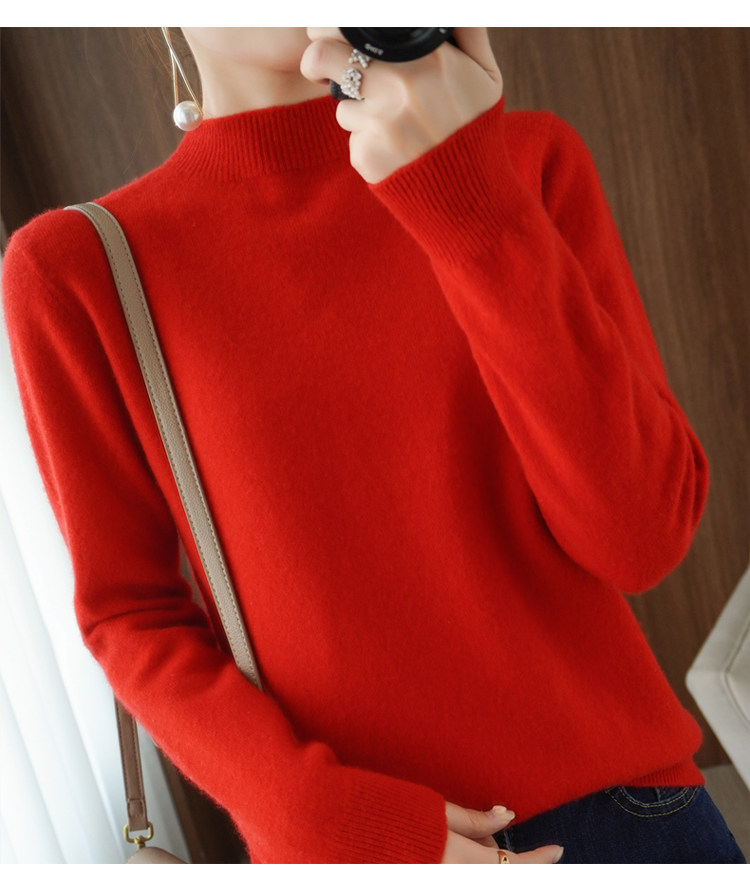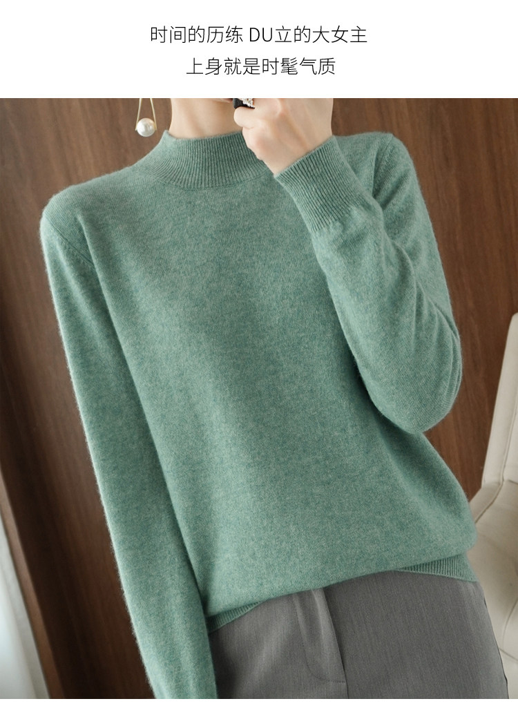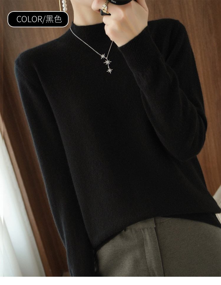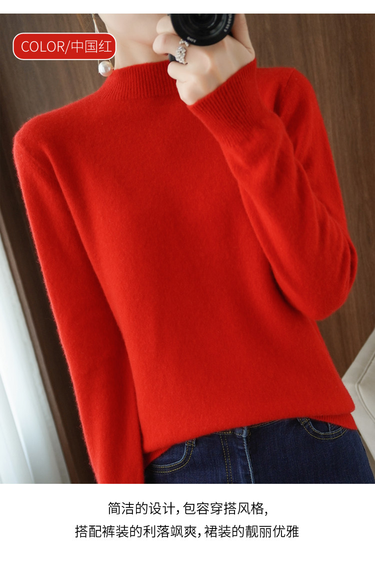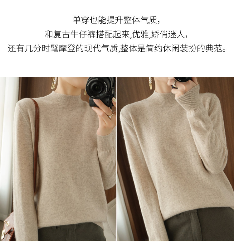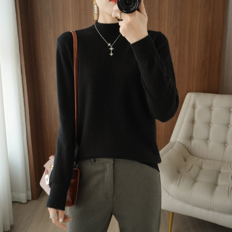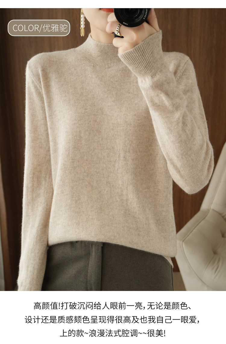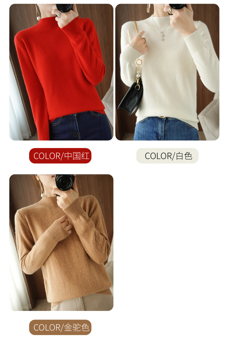 半中高领毛衣女羊毛秋冬加厚新款内搭打底衫洋气套头学生针织宽松