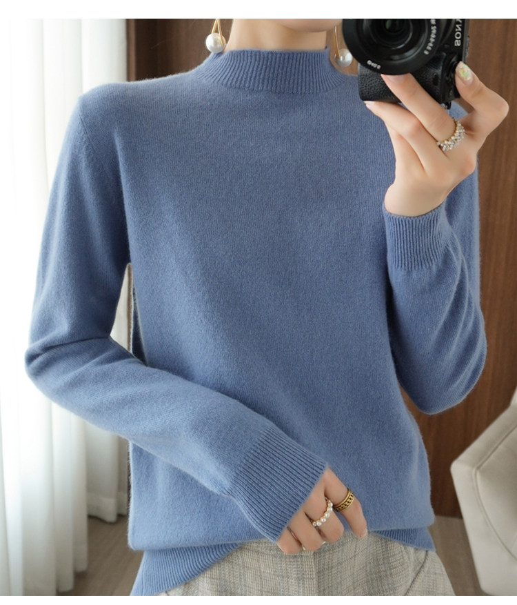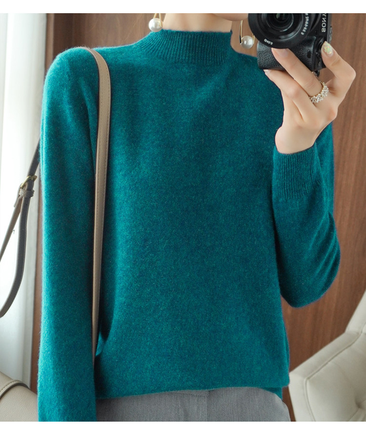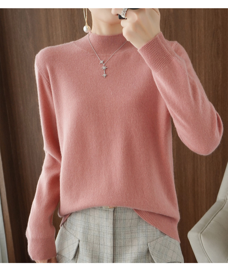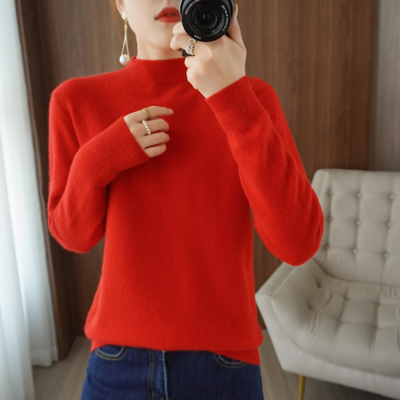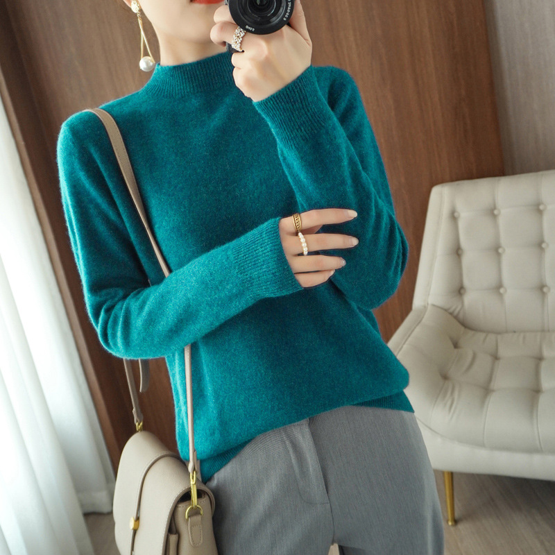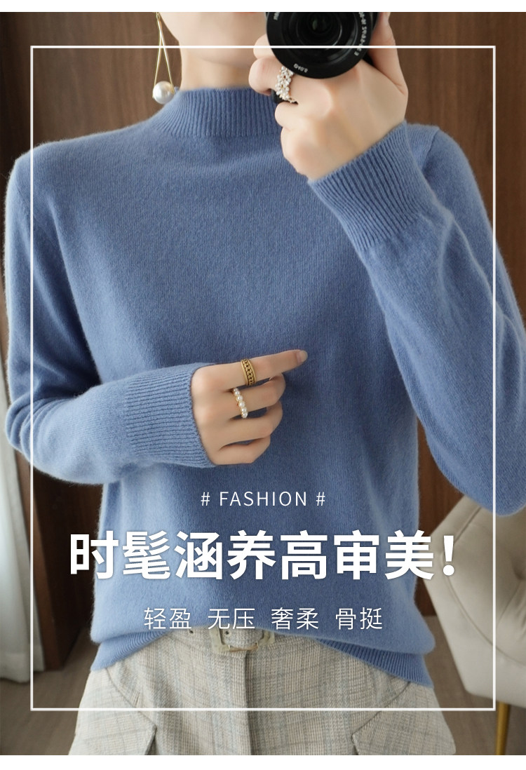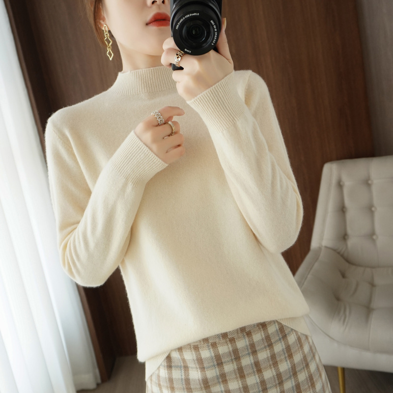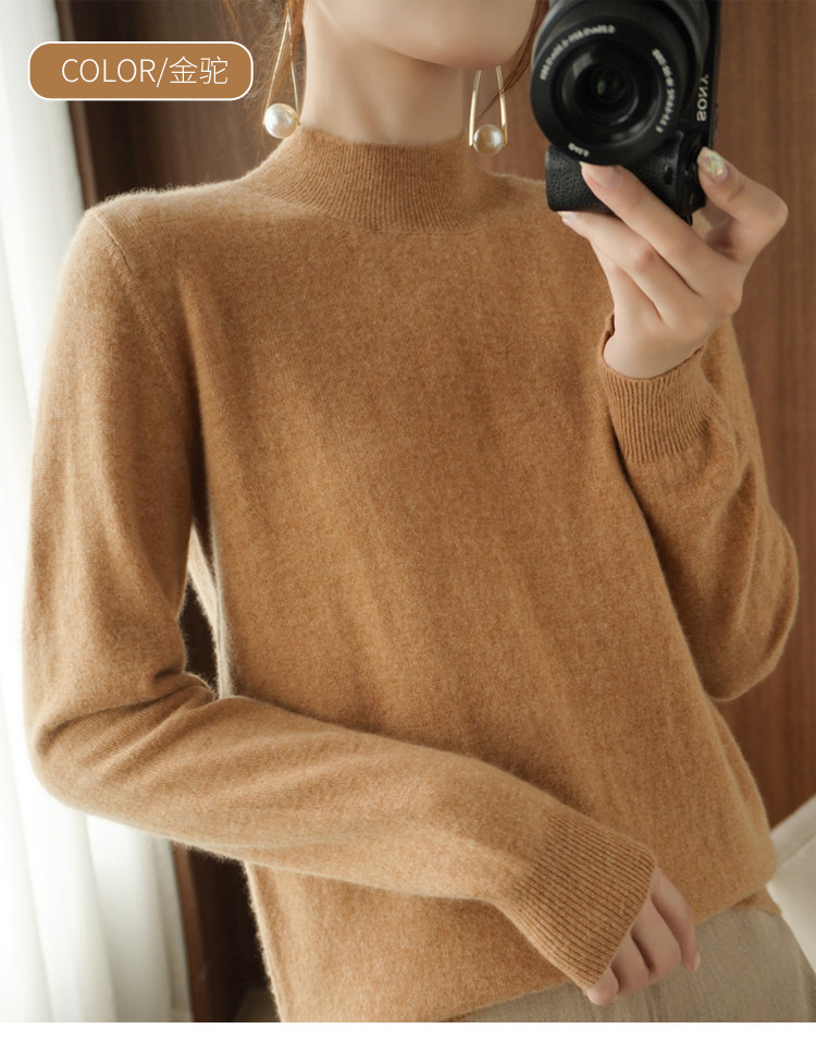 半中高领毛衣女羊毛秋冬加厚新款内搭打底衫洋气套头学生针织宽松