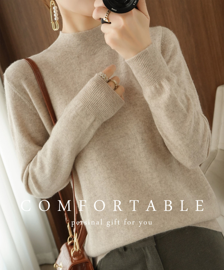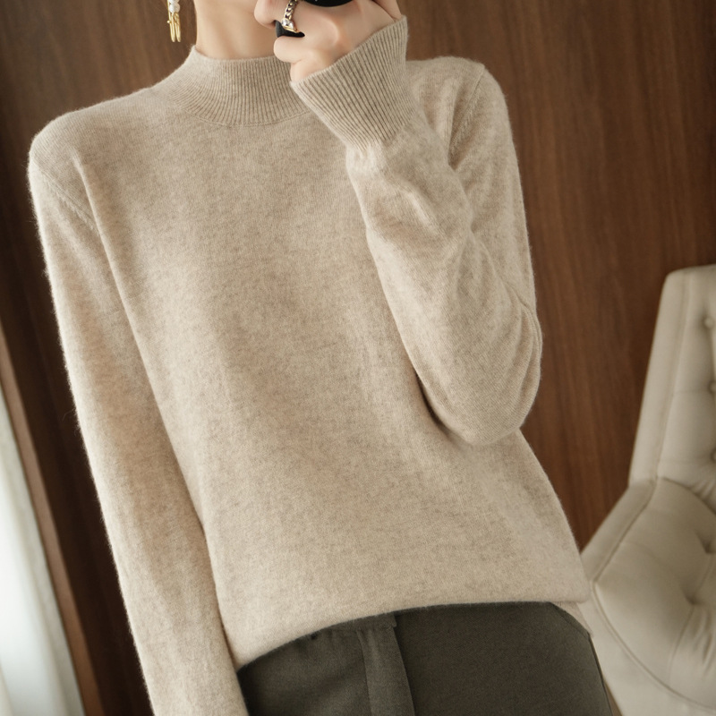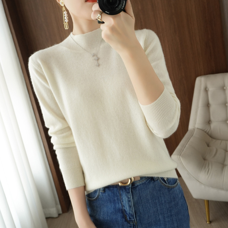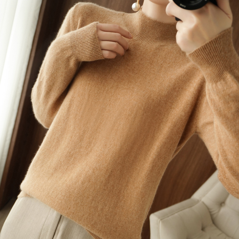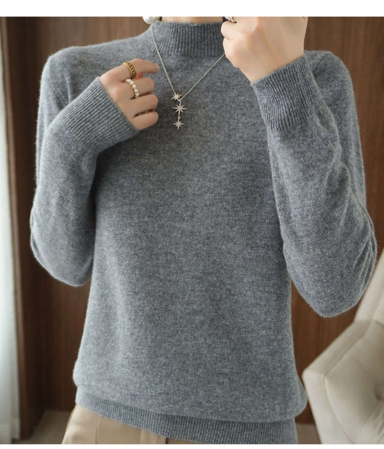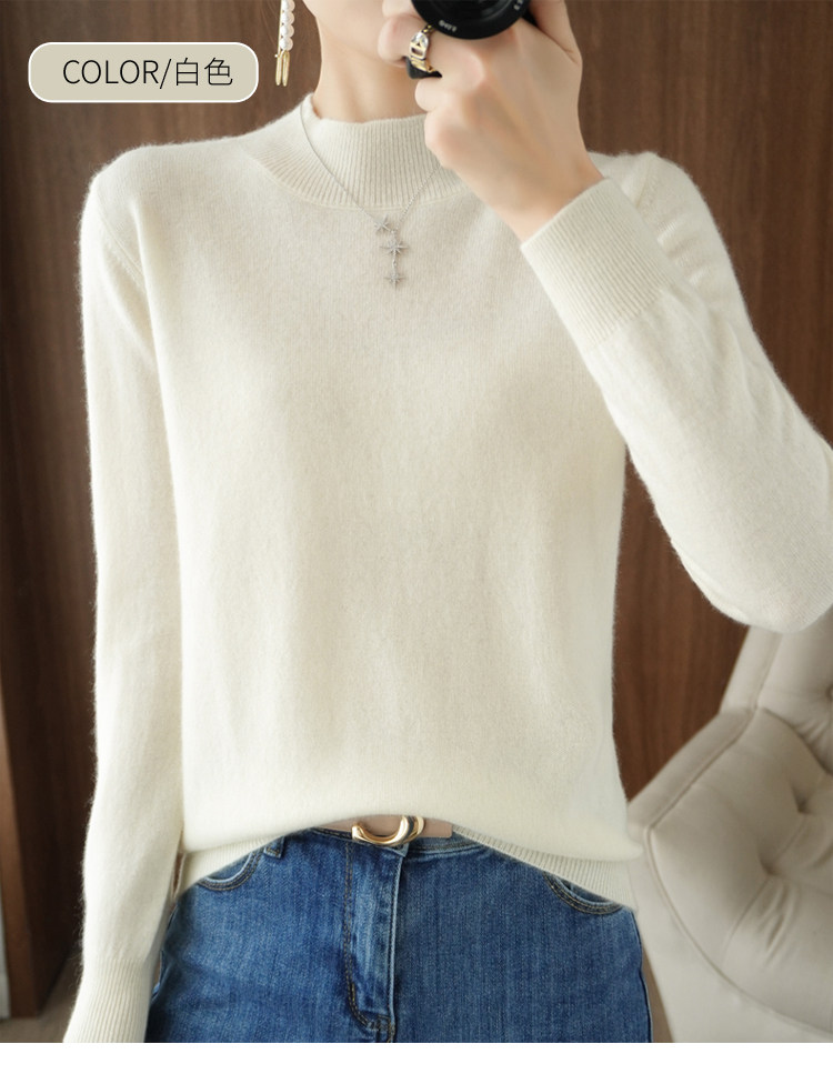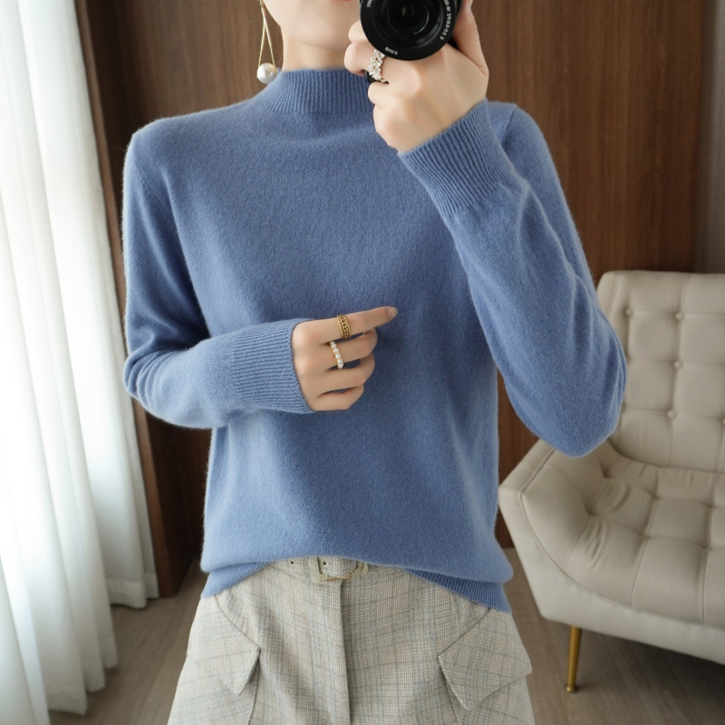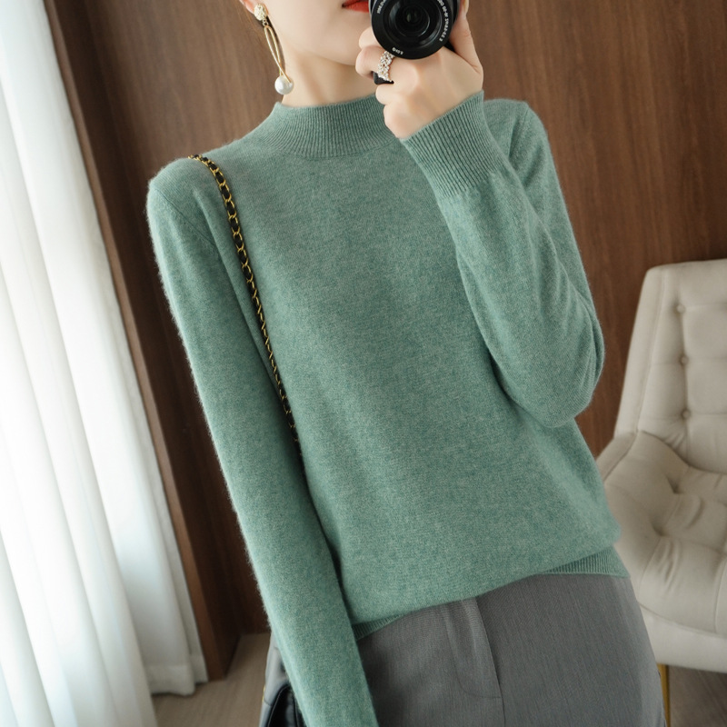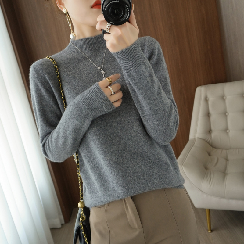 半中高领毛衣女羊毛秋冬加厚新款内搭打底衫洋气套头学生针织宽松