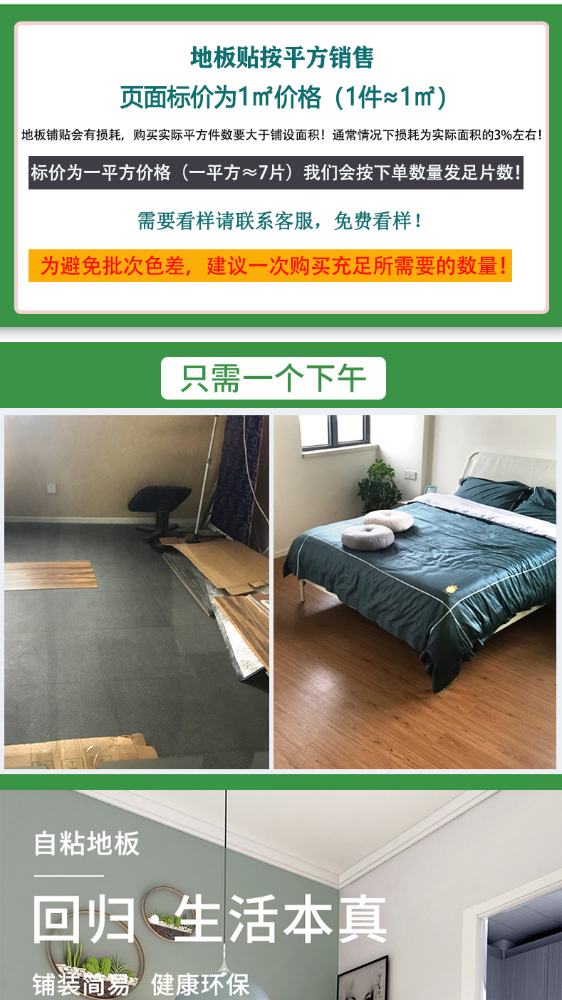 PVC木纹地板贴自粘地板加厚防水耐磨塑胶地板革家用卧室水泥地面