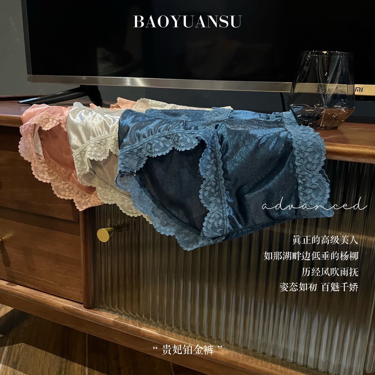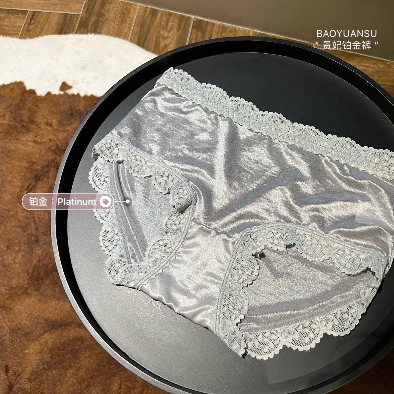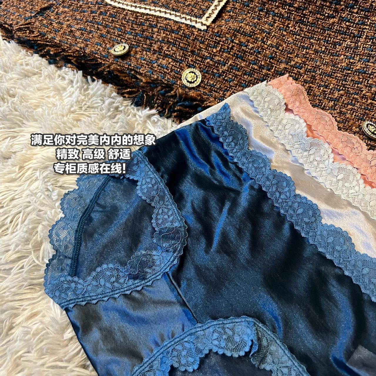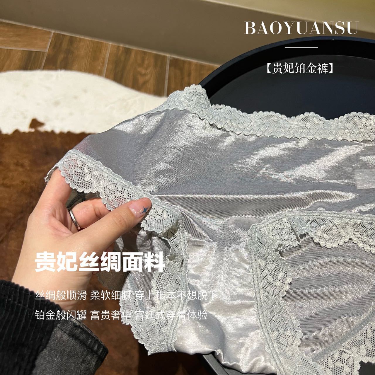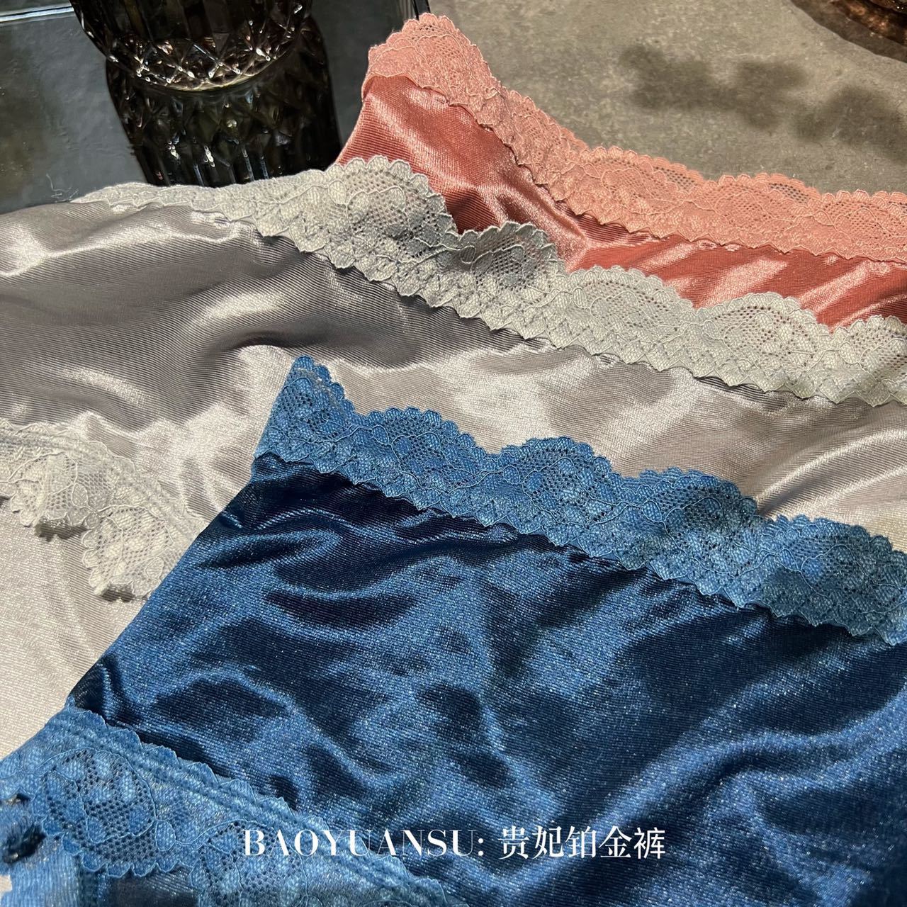 新款贵妃铂金裤性感蕾丝边绸缎无痕中腰包臀三角女士均码内裤礼盒