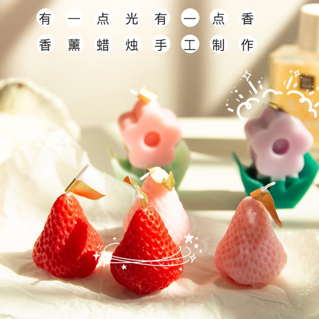 仿真草莓花朵造型香薰蜡烛外贸