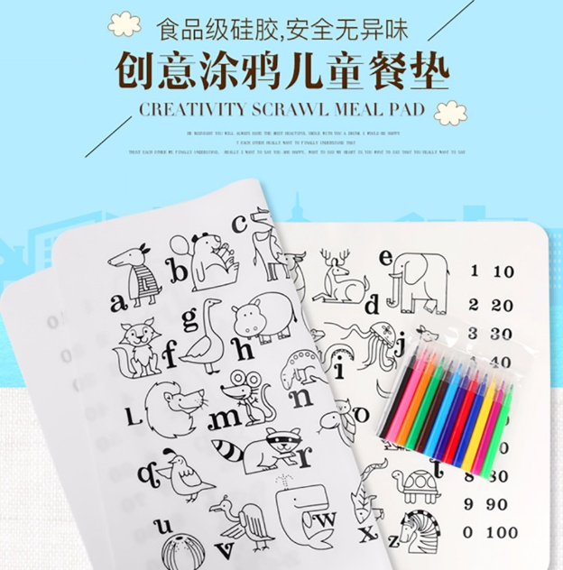 可折叠防水儿童涂色便携式硅胶垫涂画垫外贸