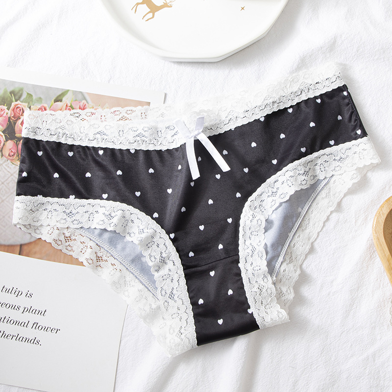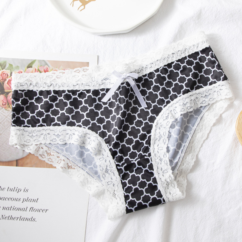 2022新款冰丝印花内裤女士中低腰提臀裆部透气蕾丝三角内裤女